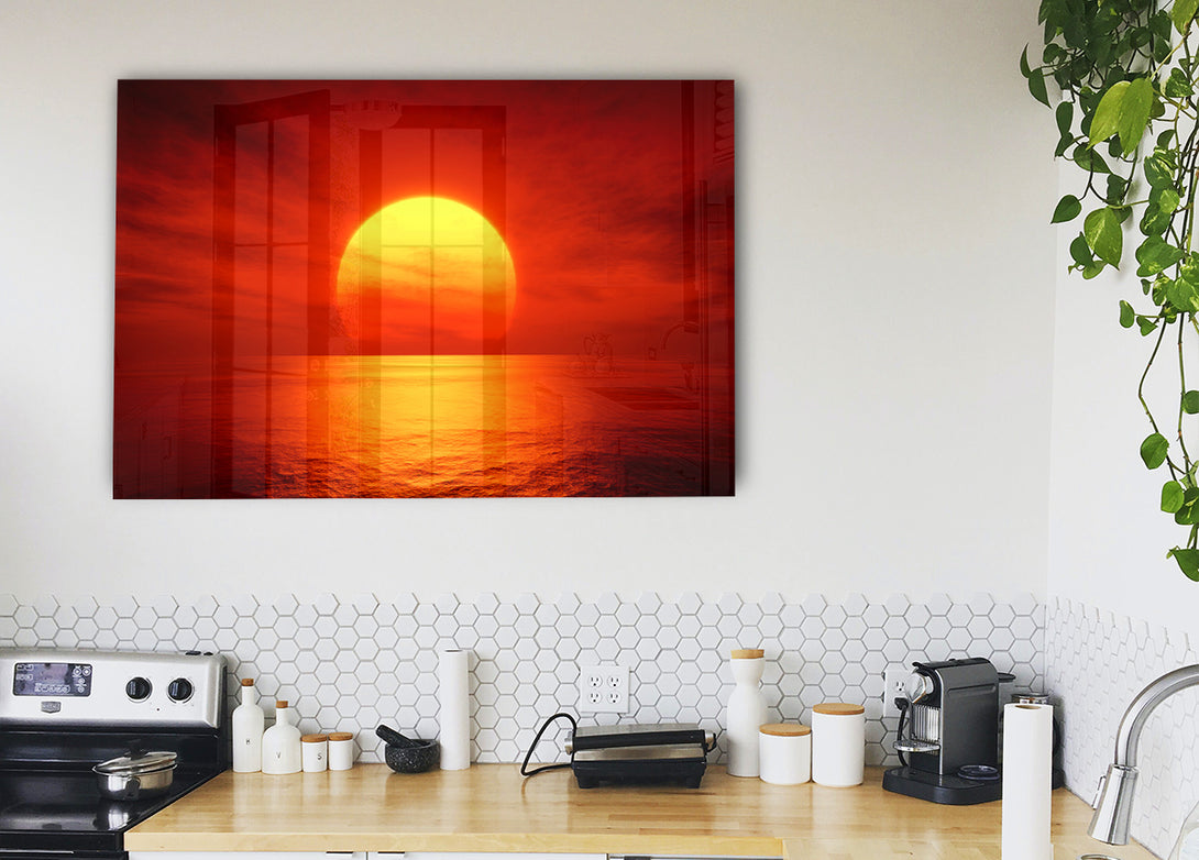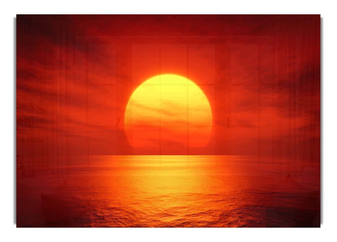 Red Ocean Glow acrylic print, UV printed onto 5mm thick acrylic glass. Comes with everything you need to hang on your wall.