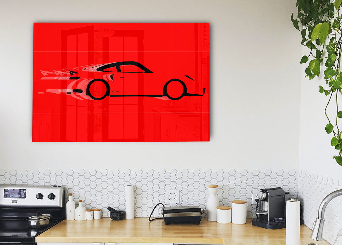 Red Porsche Blur acrylic print, UV printed onto 5mm thick acrylic glass. Comes with everything you need to hang on your wall.