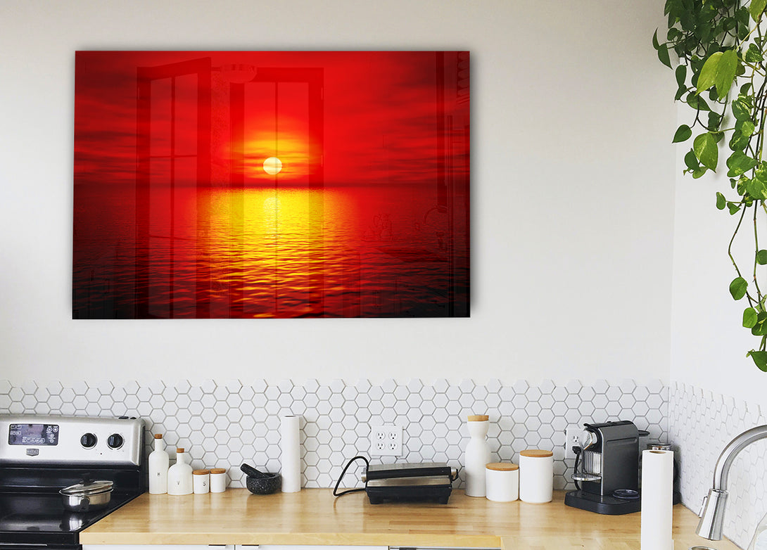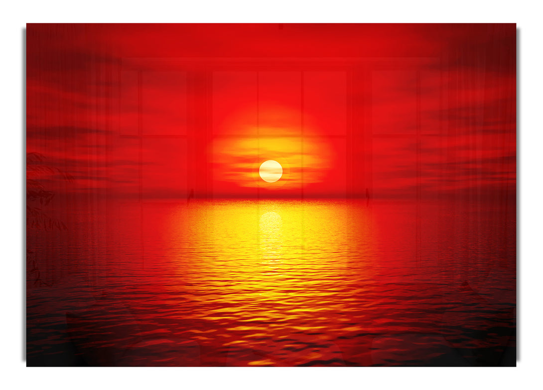 Red Skies Over The Golden Ocean acrylic print, UV printed onto 5mm thick acrylic glass. Comes with everything you need to hang on your wall.