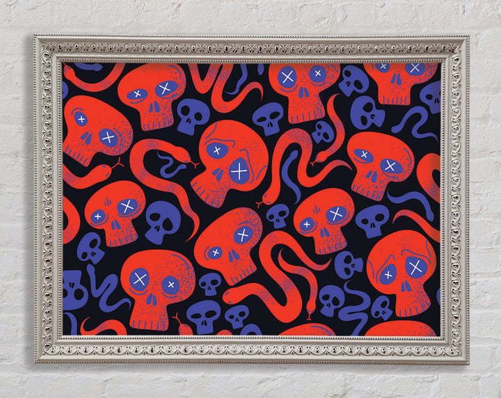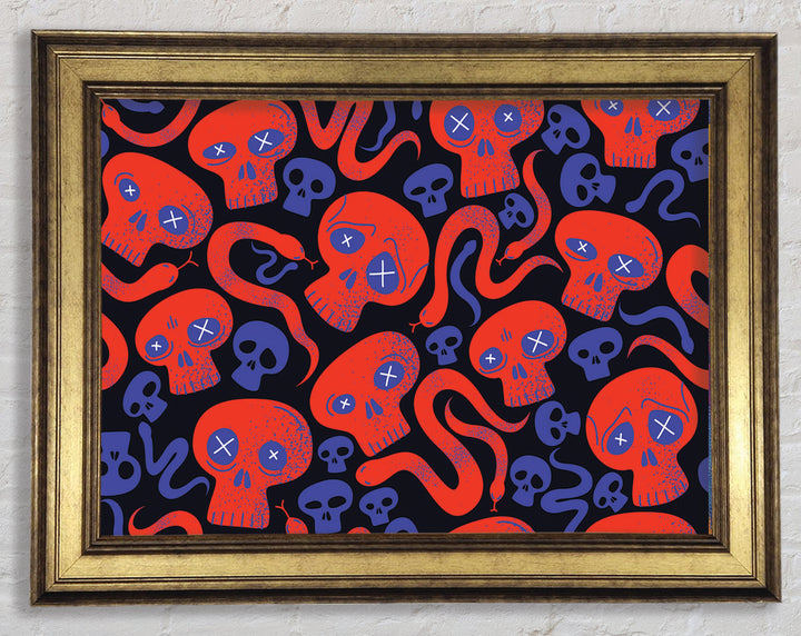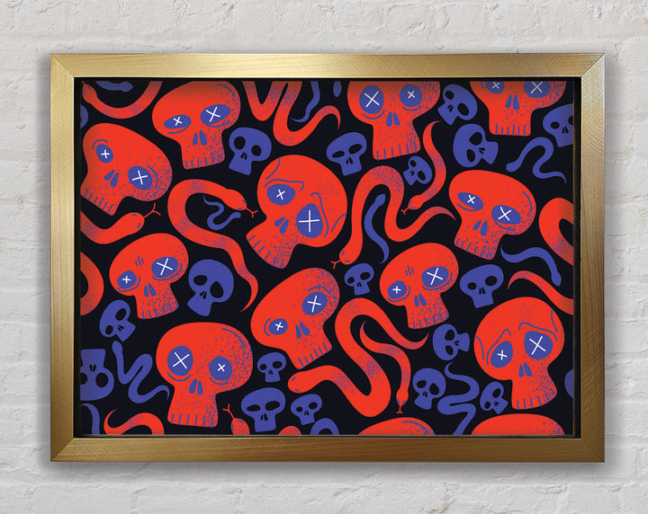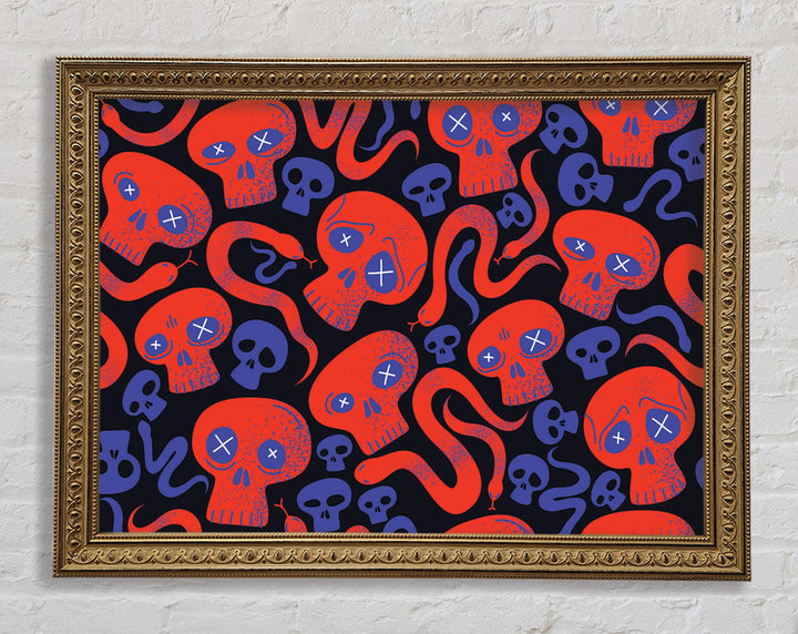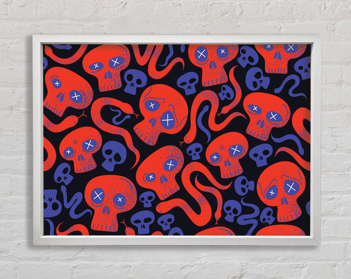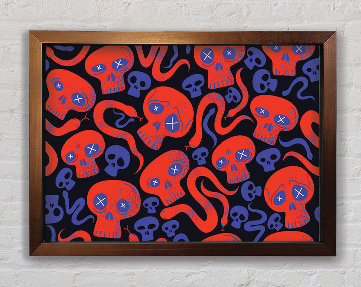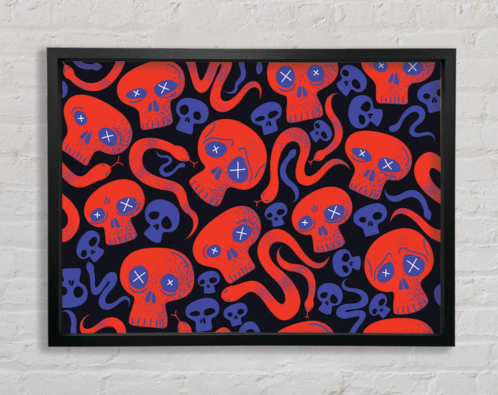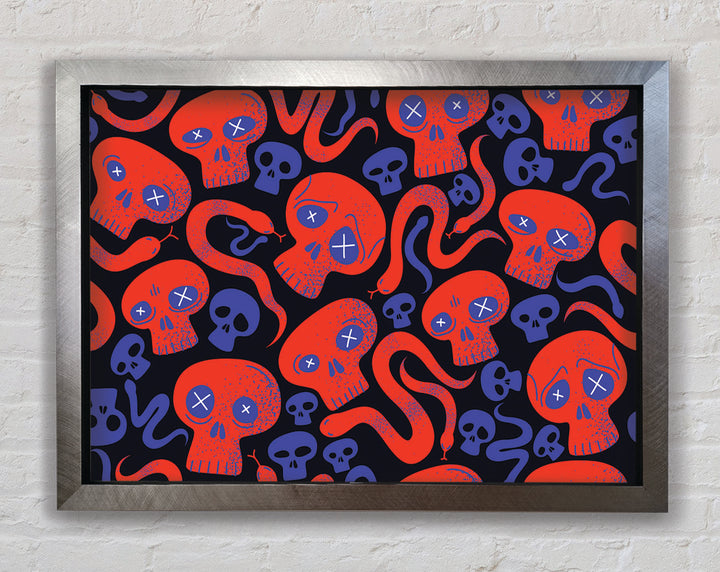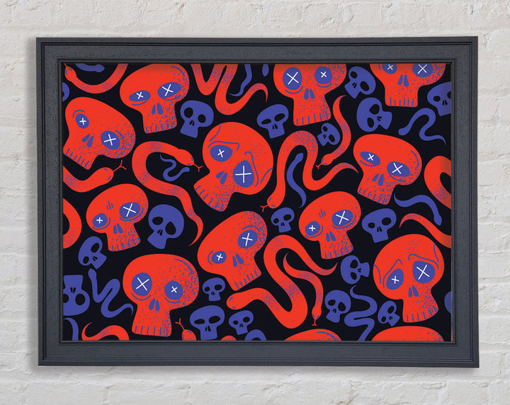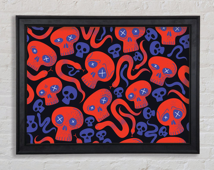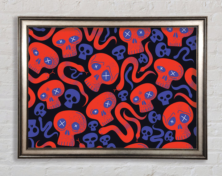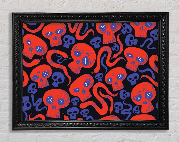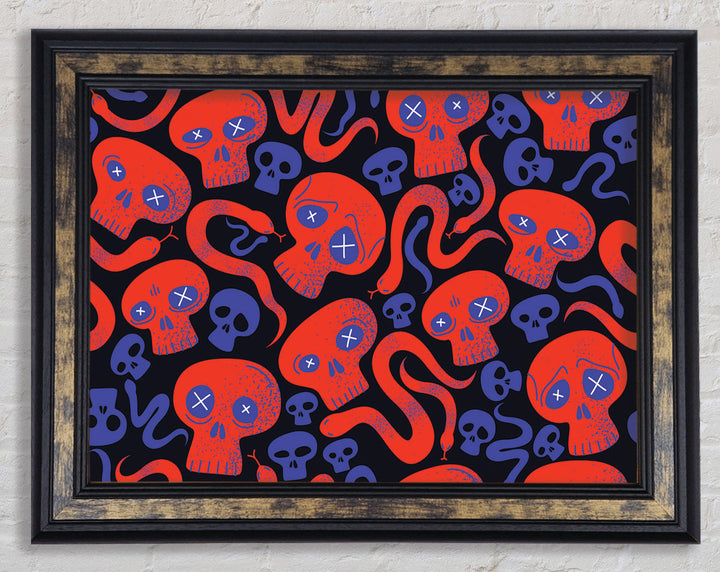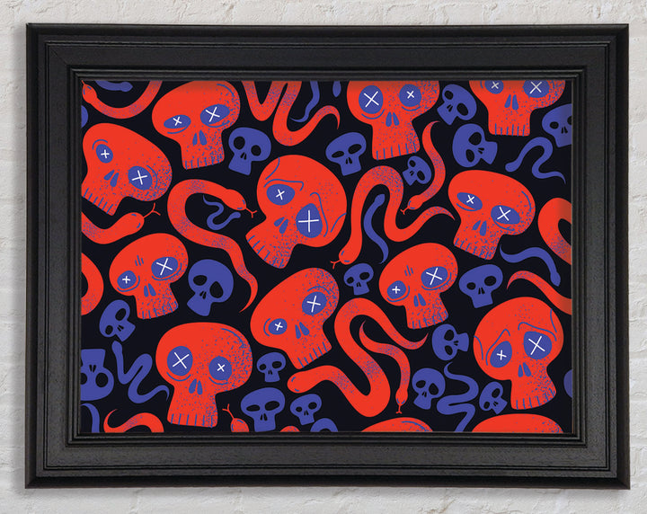 Introducing the Red Skull And Snakes Framed Print, a striking piece of framed art that commands attention in any room. This captivating artwork blends bold reds and intricate snake designs to create a powerful visual statement. Available in six sizes, from small to oversized, you can choose the perfect fit for your space. Each piece is handmade in the United Kingdom, ensuring exceptional quality and craftsmanship. The print comes in a variety of colors, allowing you to match it seamlessly with your décor. Ready to hang straight out of the box, this framed art adds a touch of edgy sophistication to your home or office. Elevate your walls with this unique and mesmerizing artwork today!