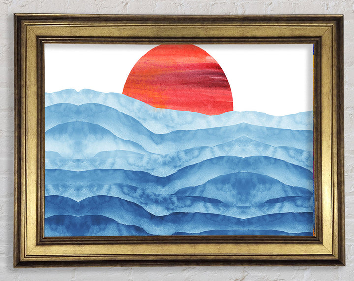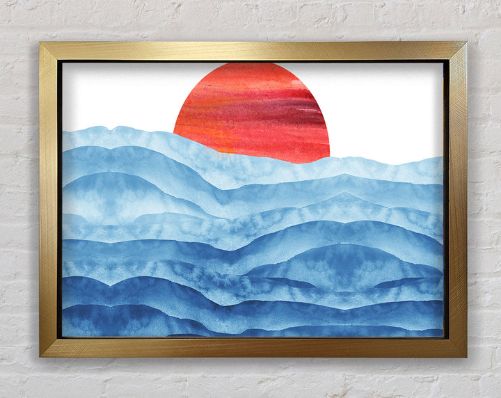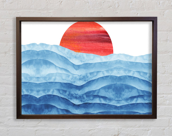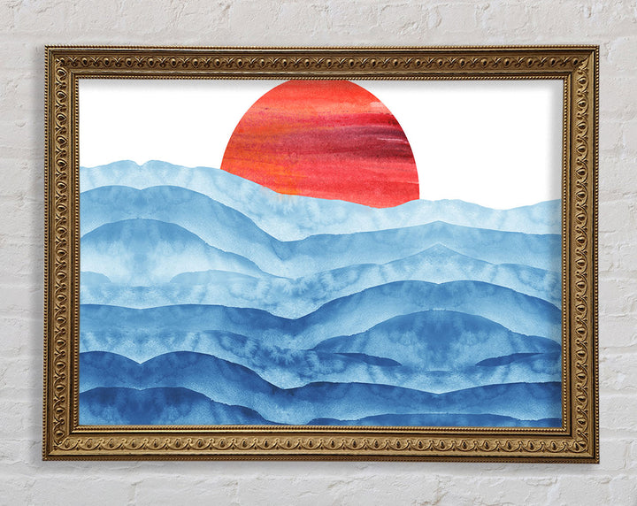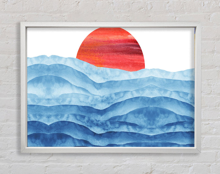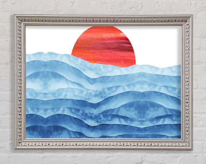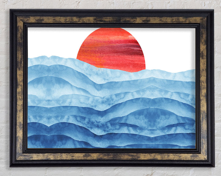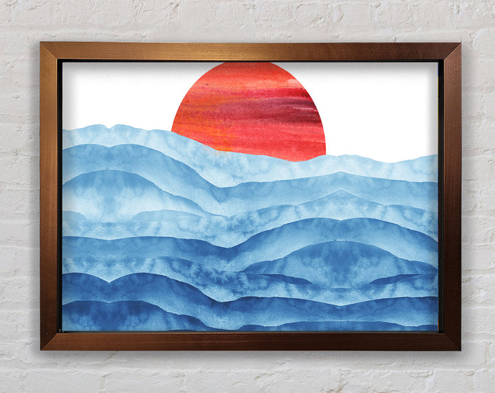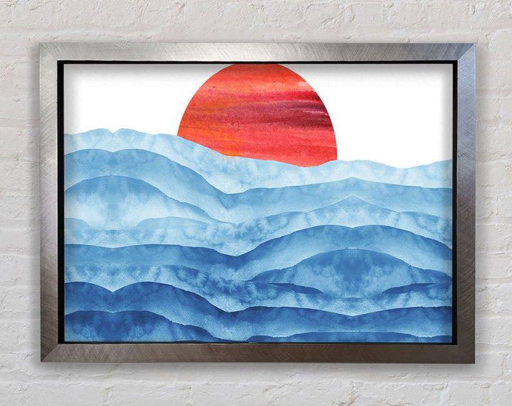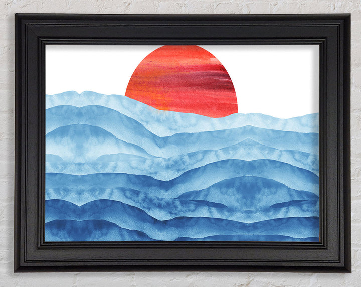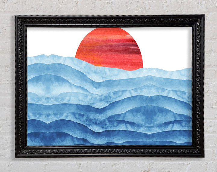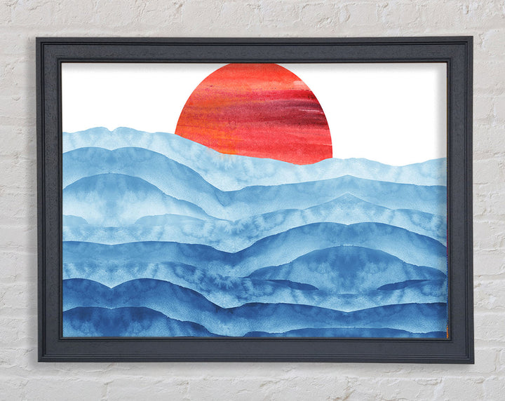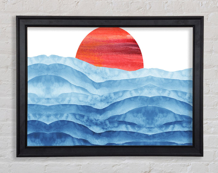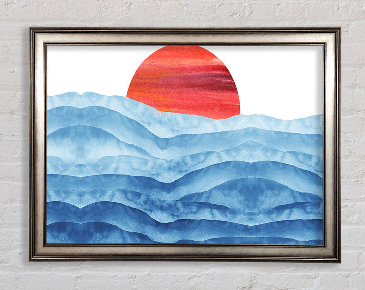 Red Sun Over The Ripples Framed Print