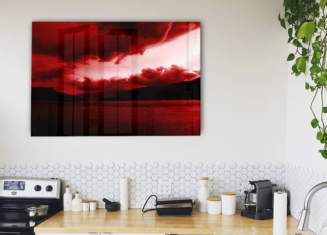 Red Tempset Sky 02 acrylic print, UV printed onto 5mm thick acrylic glass. Comes with everything you need to hang on your wall.
