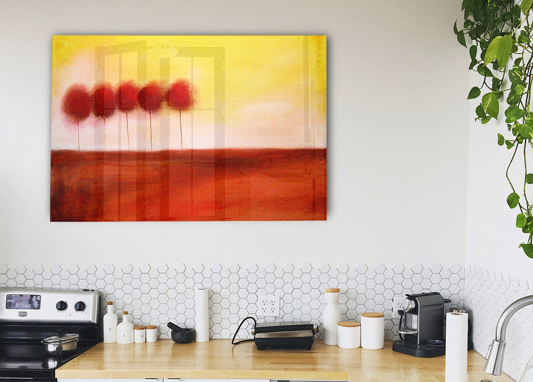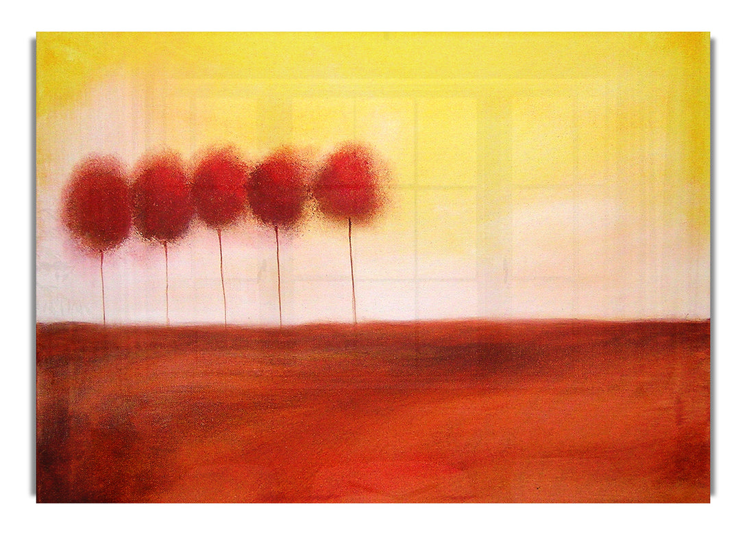 Red Tree Line Up acrylic print, UV printed onto 5mm thick acrylic glass. Comes with everything you need to hang on your wall.