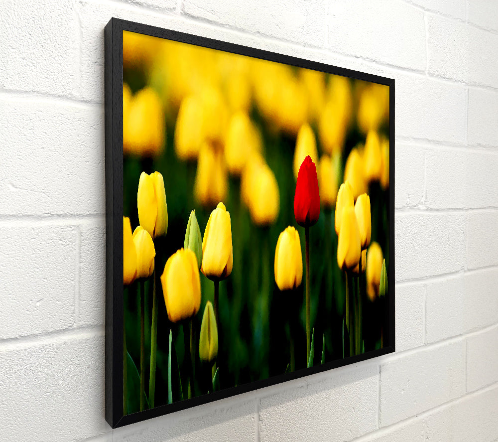 Red Tulip In A Field Of Yellows