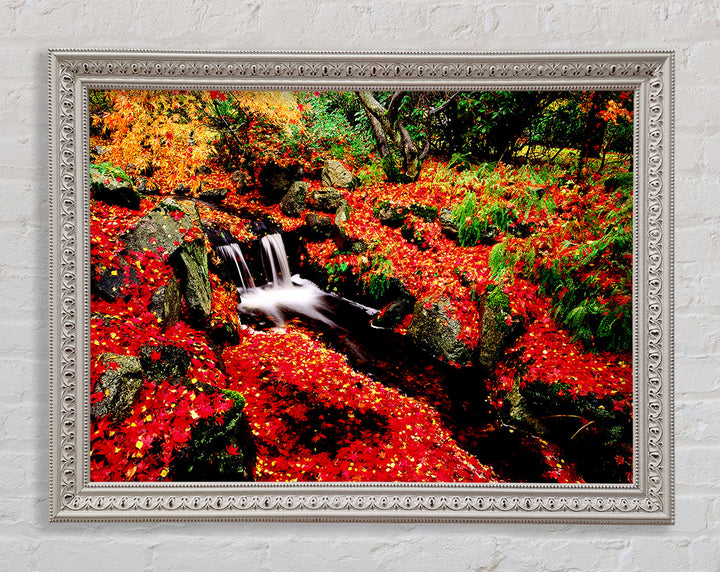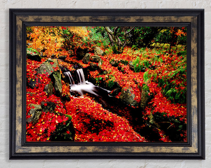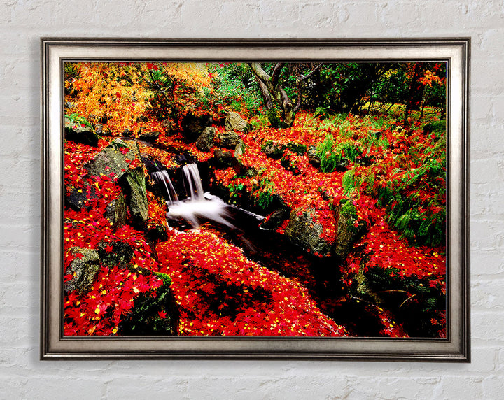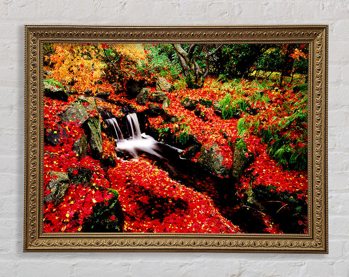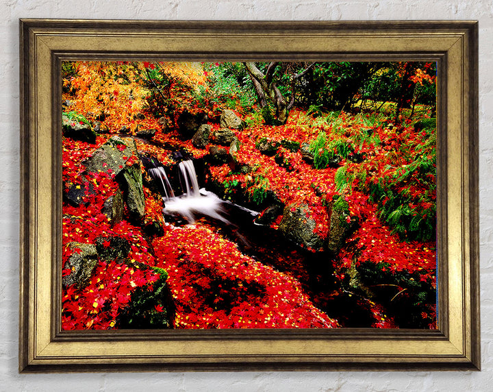 Red Winter Waterfall Framed Print