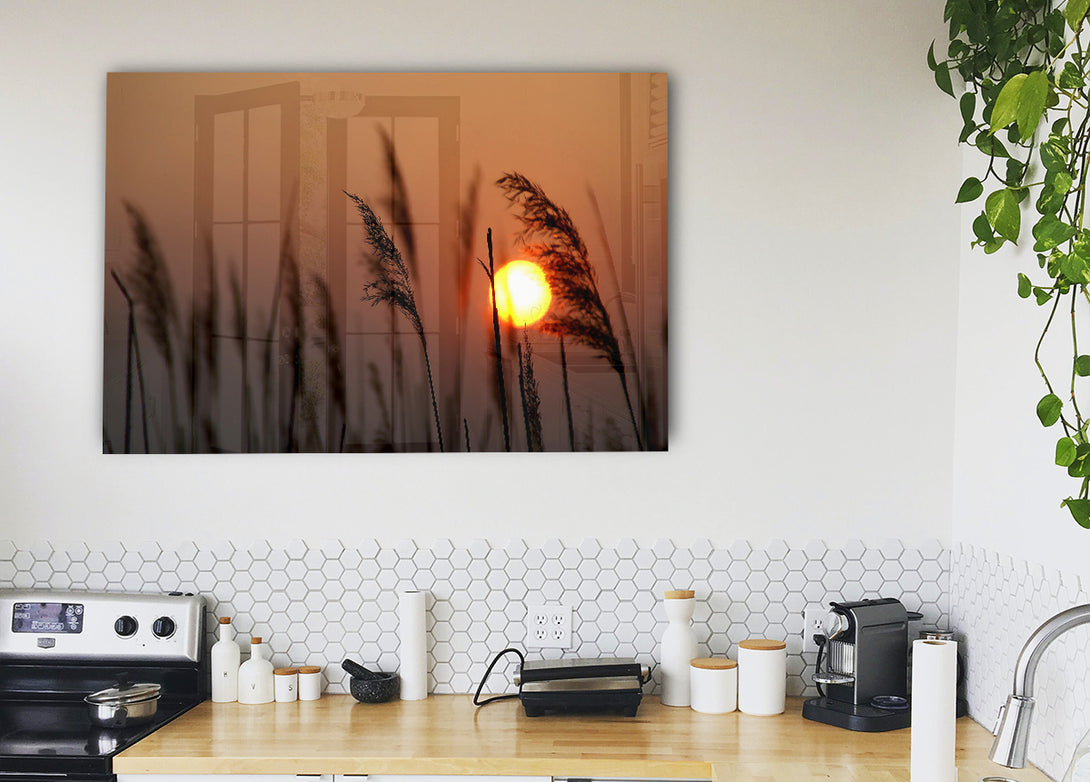 Reed Silhouette At Sunset acrylic print, UV printed onto 5mm thick acrylic glass. Comes with everything you need to hang on your wall.