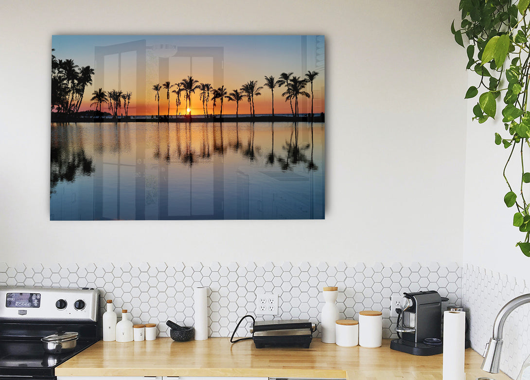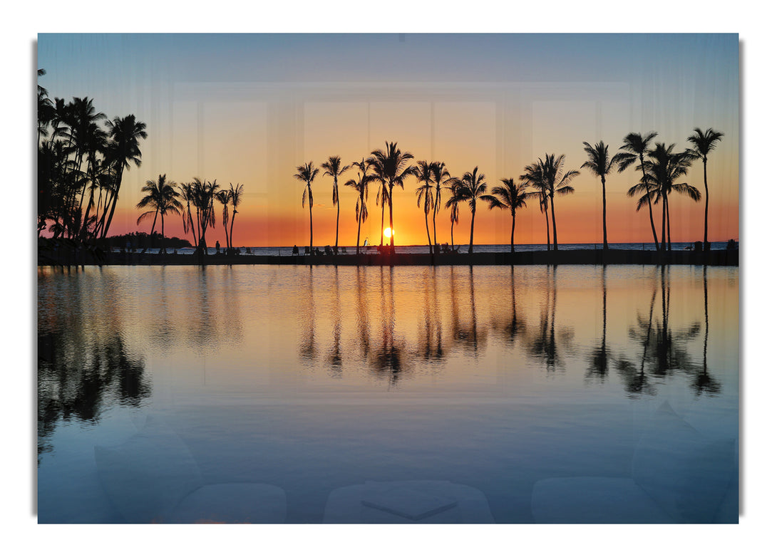 Reflections Of The Palm Trees acrylic print, UV printed onto 5mm thick acrylic glass. Comes with everything you need to hang on your wall.