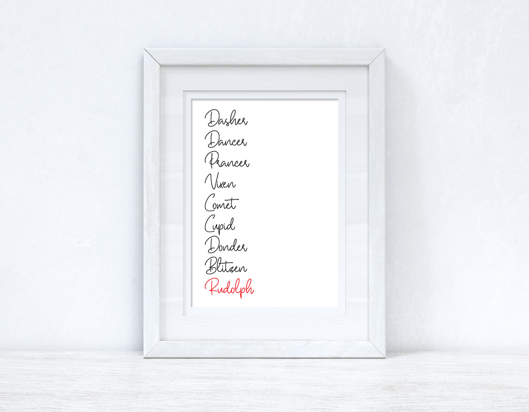 Reindeer Names Christmas Seasonal Winter Wall Home Decor Print