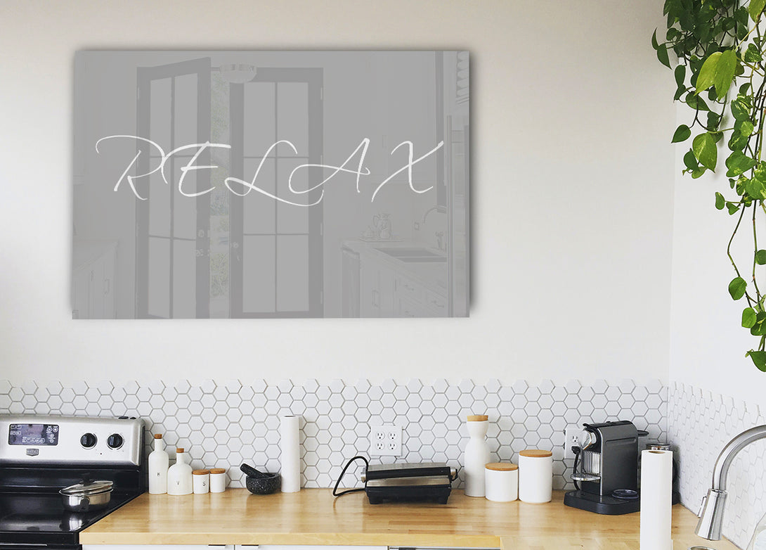 Relax Grey White acrylic print, UV printed onto 5mm thick acrylic glass. Comes with everything you need to hang on your wall.