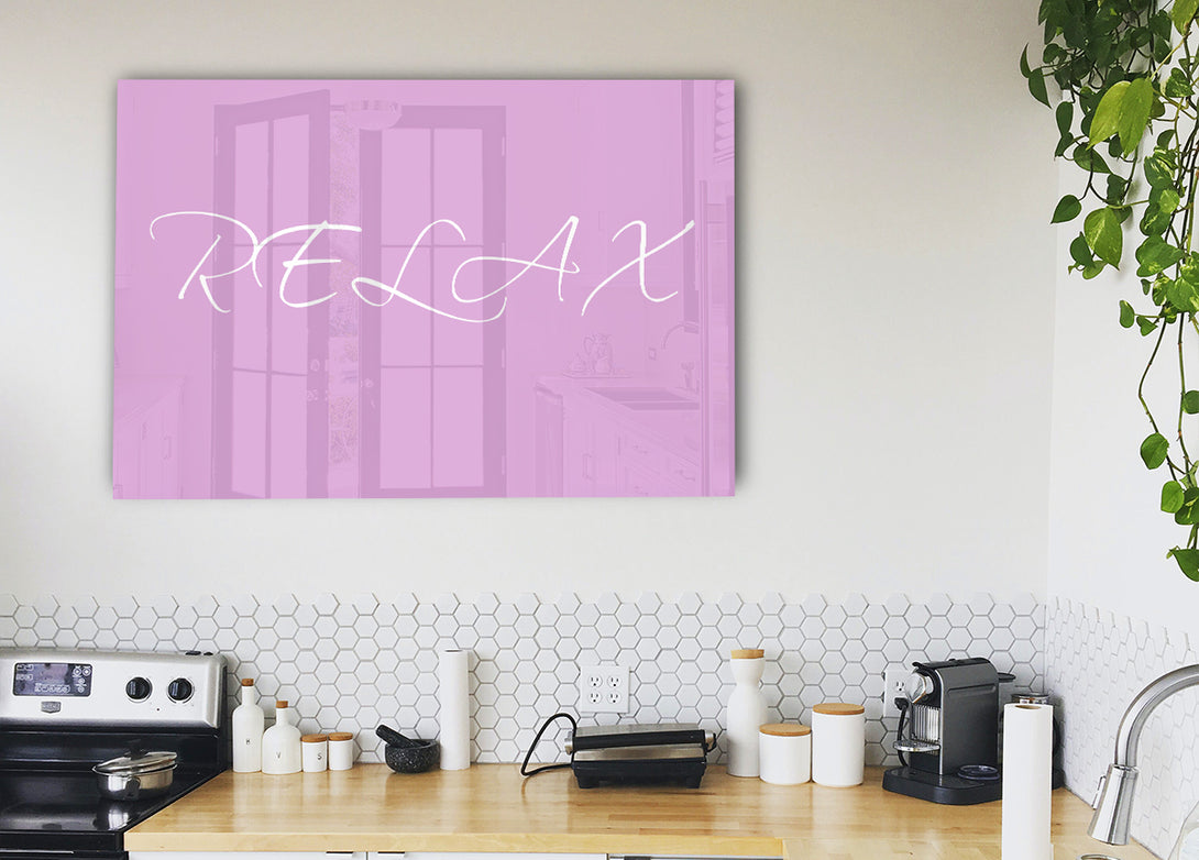 Relax Pink acrylic print, UV printed onto 5mm thick acrylic glass. Comes with everything you need to hang on your wall.