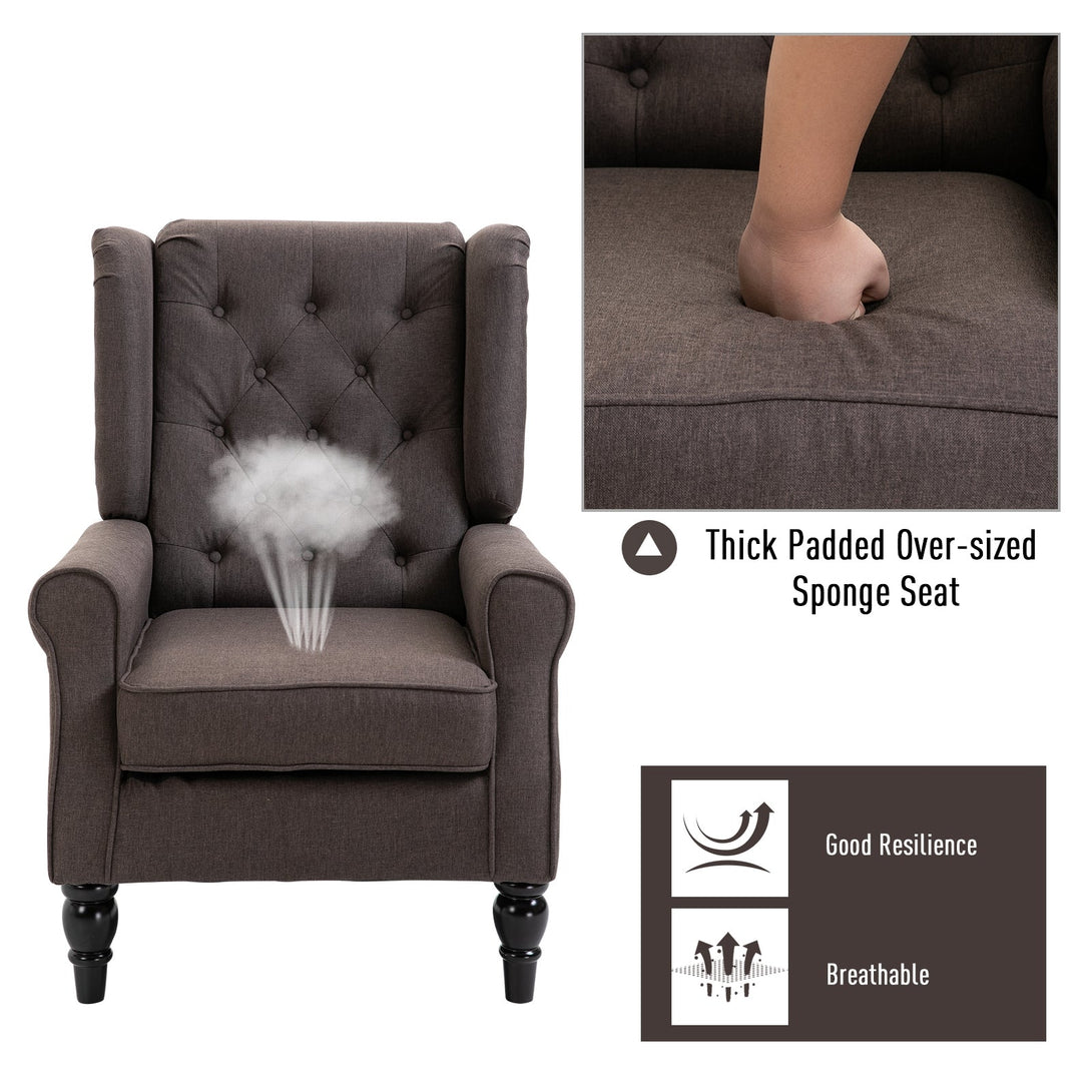 Inject a vintage feel into your home with this HOMCOM accent chair. The frame is made from wood for a strong and solid foundation, supporting up to 160kg. The wide and large frame is padded for comfort. Comes complete with tufting on the back for extra style.