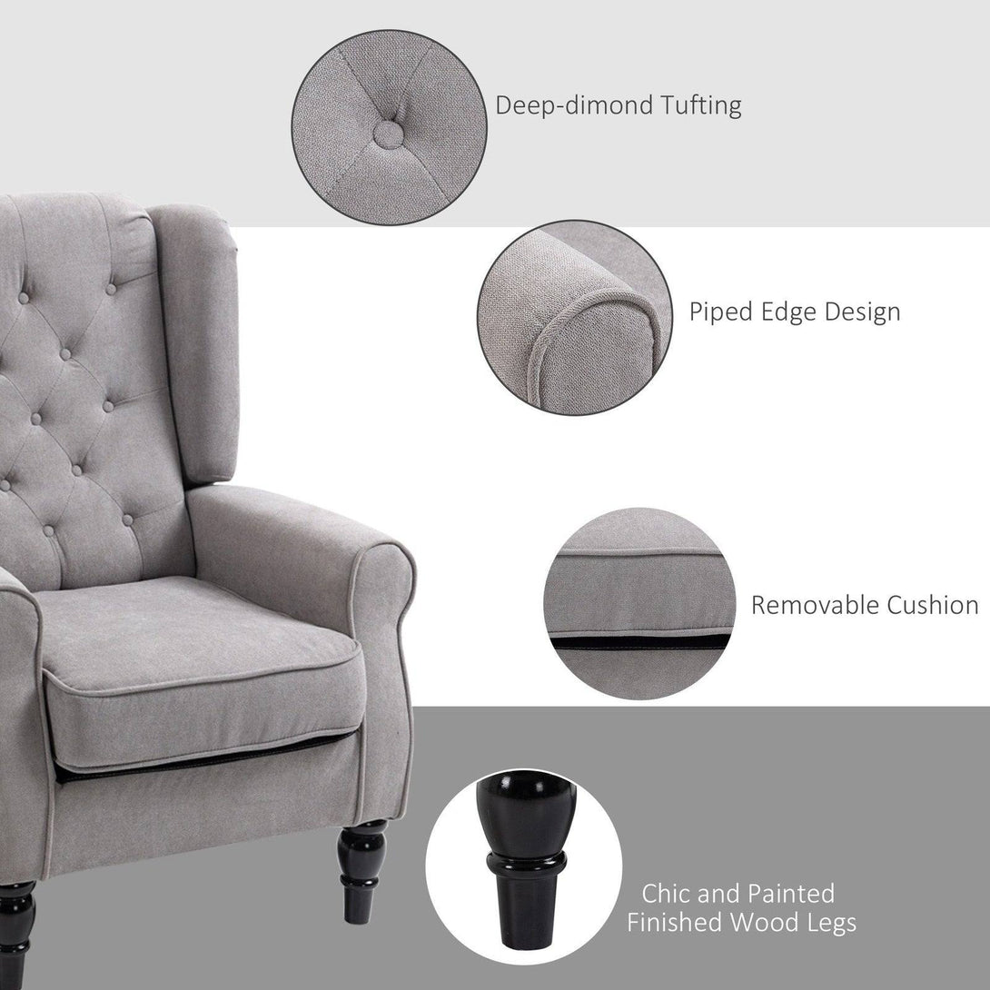Inject a vintage feel into your home with this HOMCOM accent chair. The frame is made from wood for a strong and solid foundation, supporting up to 160kg. The wide and large frame is padded for comfort. Comes complete with tufting on the back for extra style.