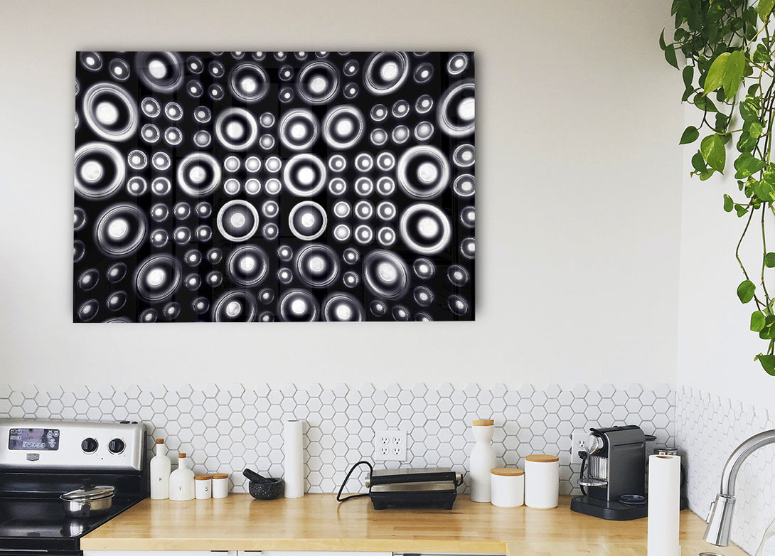 Retro Circles acrylic print, UV printed onto 5mm thick acrylic glass. Comes with everything you need to hang on your wall.