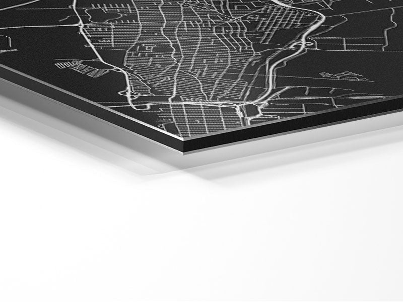 Retro map Of The City 1 Printed on brushed aluminium dibond. A modern way to display art and easy to maintain.