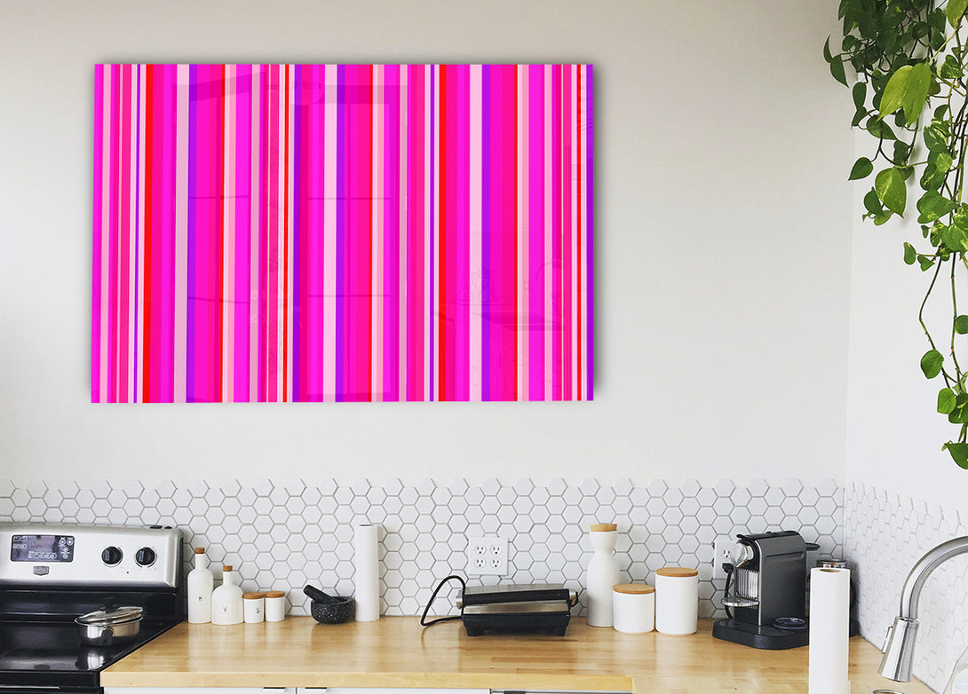 Retro Stripes Pink acrylic print, UV printed onto 5mm thick acrylic glass. Comes with everything you need to hang on your wall.