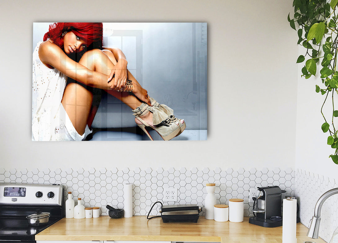 Rihanna 11 acrylic print, UV printed onto 5mm thick acrylic glass. Comes with everything you need to hang on your wall.