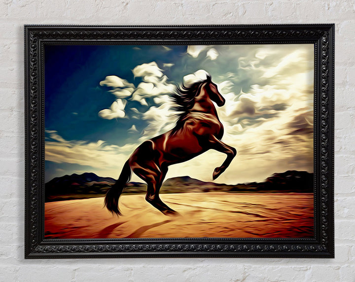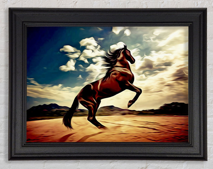 Introducing the Rising Horse Framed Print, a stunning piece of framed art that will add elegance and charm to any room. This exquisite print captures the powerful beauty of a horse in mid-rise, bringing a sense of movement and grace to your space. Available in six sizes ranging from small to oversized, you can find the perfect fit for any wall. Choose from a variety of colors to match your decor seamlessly. Each print is handmade in the United Kingdom, ensuring top-notch craftsmanship and attention to detail. Ready to hang straight out of the box, this framed art makes decorating easy and hassle-free. Elevate your home or office with the timeless allure of the Rising Horse Framed Print.