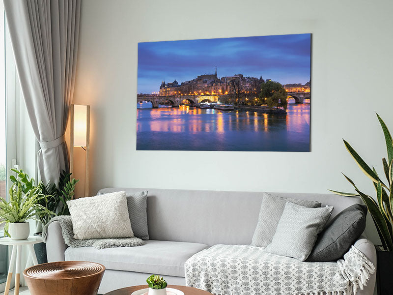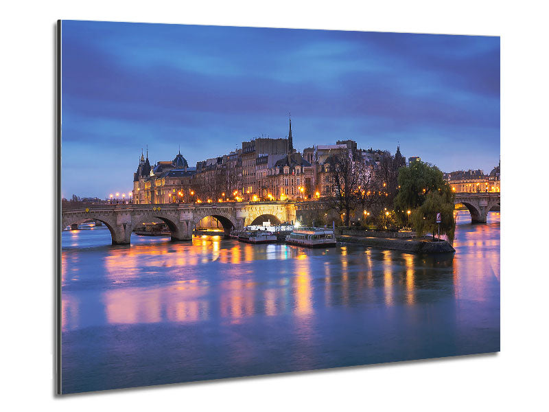 River Seine At Twilight 2 Printed on brushed aluminium dibond. A modern way to display art and easy to maintain.
