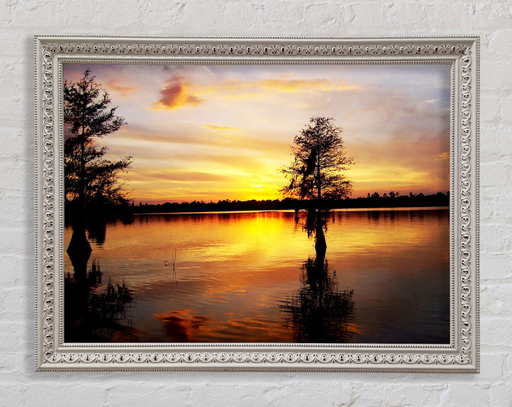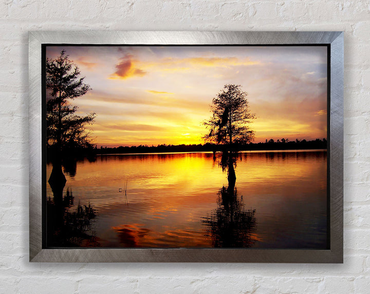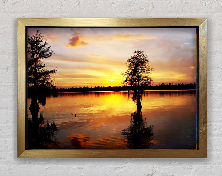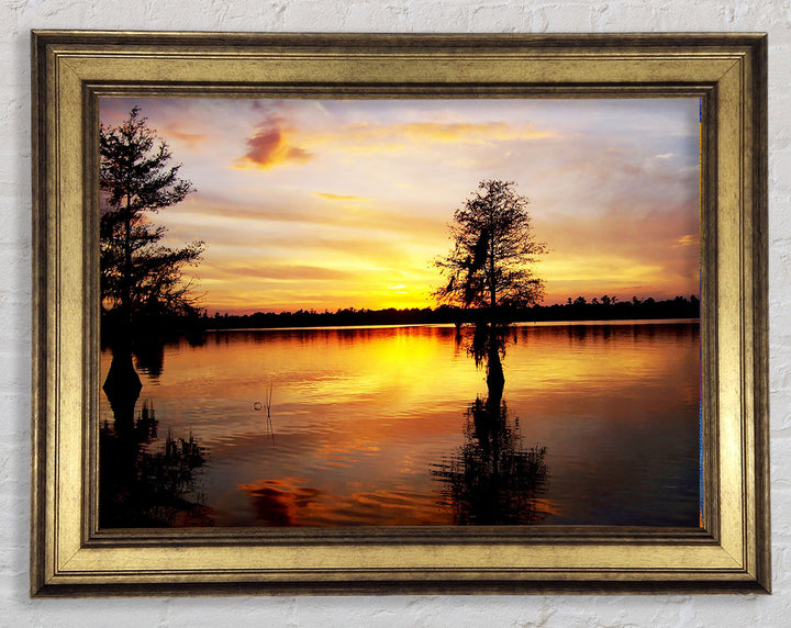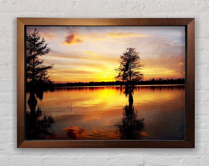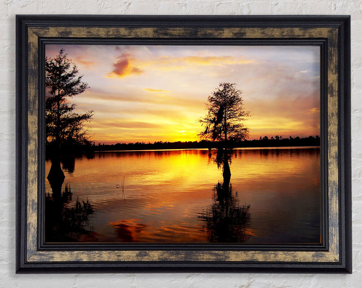 River Tree Sunset Framed Print