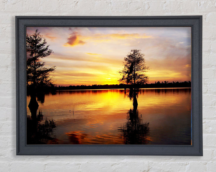 Introducing the River Tree Sunset Framed Print, a stunning piece of framed art that brings the beauty of nature into your home. This artwork captures a serene sunset over a river, featuring a lone tree that adds a peaceful touch to any room. Available in six sizes, from small to oversized, you can choose the perfect fit for your space. The frame comes in a variety of colors to match any décor. Handmade in the United Kingdom, each piece is crafted with care and quality. Ready to hang, this framed print is an effortless way to elevate your home or office with timeless beauty.