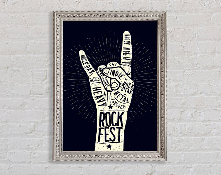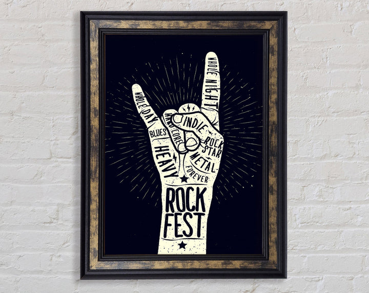 Handmade in the United Kingdom, each print is crafted with care and attention to detail. The high-quality frame is designed to last and comes ready to hang, making it easy to add a touch of rock 'n' roll flair to your walls. Perfect for music lovers and art enthusiasts alike, the Rock Fest Framed Print is a must-have addition to any collection.