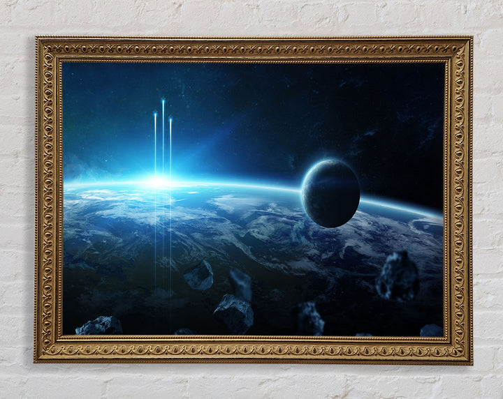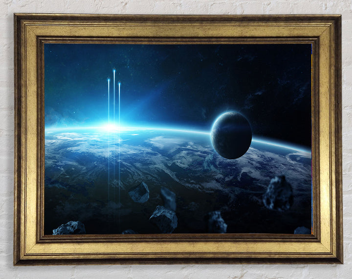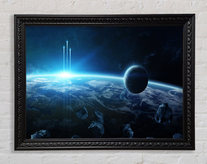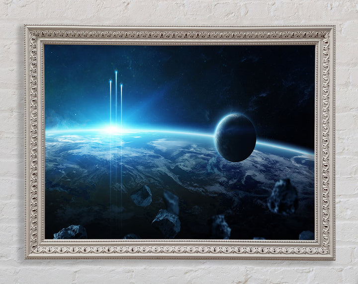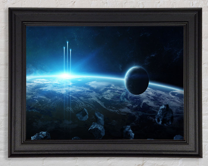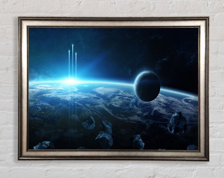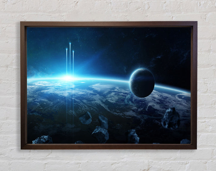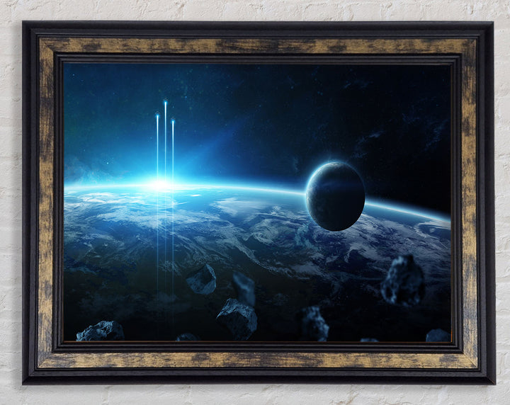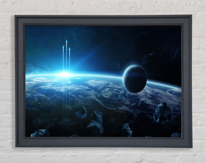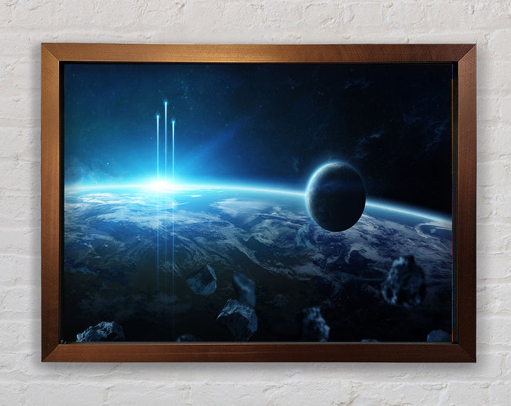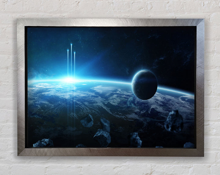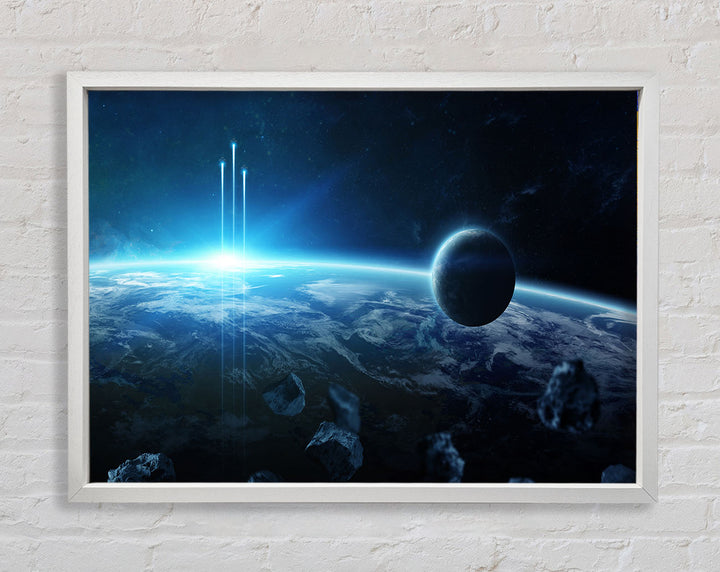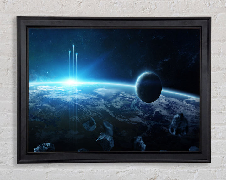 Elevate your home or office with our "Rockets Breaking the Atmosphere" framed print. This stunning piece of framed art captures the thrilling moment rockets pierce through the sky. Available in six sizes, from small to oversized, it ensures a perfect fit for any space. Choose from a variety of colors to match your decor effortlessly. Each print is handmade by skilled artisans in the United Kingdom, guaranteeing top-notch quality and craftsmanship. Ready to hang, this framed print is a hassle-free way to add a touch of excitement and wonder to your walls. Experience the beauty of space exploration every day with this captivating artwork.
