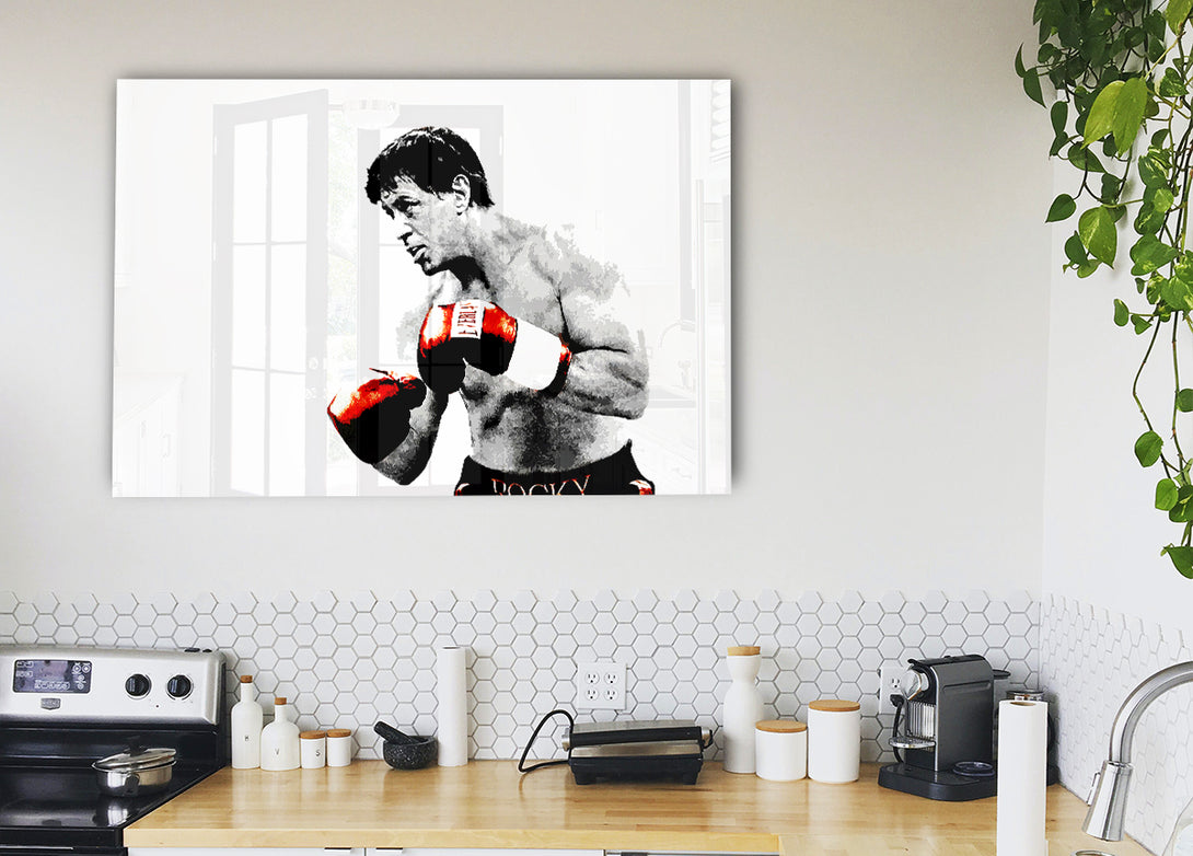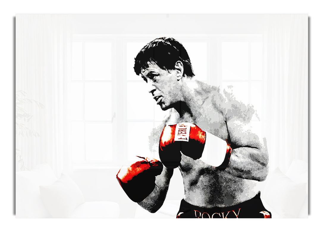 Rocky B~w Red Gloves acrylic print, UV printed onto 5mm thick acrylic glass. Comes with everything you need to hang on your wall.