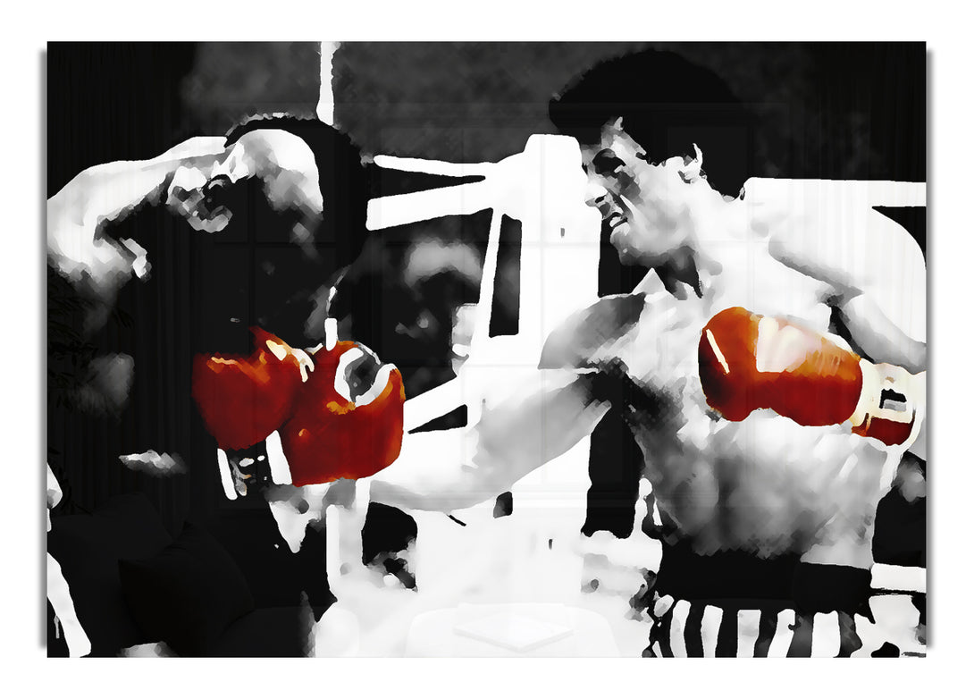 Rocky Lll Red Boxing Gloves acrylic print, UV printed onto 5mm thick acrylic glass. Comes with everything you need to hang on your wall.