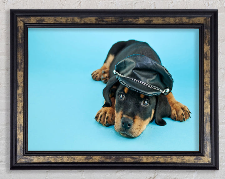 Introducing the charming Rottweiler Puppy Dog Hat Framed Print, a delightful piece of framed art perfect for any dog lover. This adorable print features a Rottweiler puppy wearing a cute hat, bringing warmth and joy to any room. Available in six sizes, from small to oversized, it fits perfectly in any space. Choose from a variety of colors to match your decor. Each piece is handmade with care in the United Kingdom, ensuring top quality and craftsmanship. Ready to hang upon arrival, this framed art adds personality and style to your home or office. Make your space feel more inviting with this heartwarming Rottweiler Puppy Dog Hat Framed Print!
