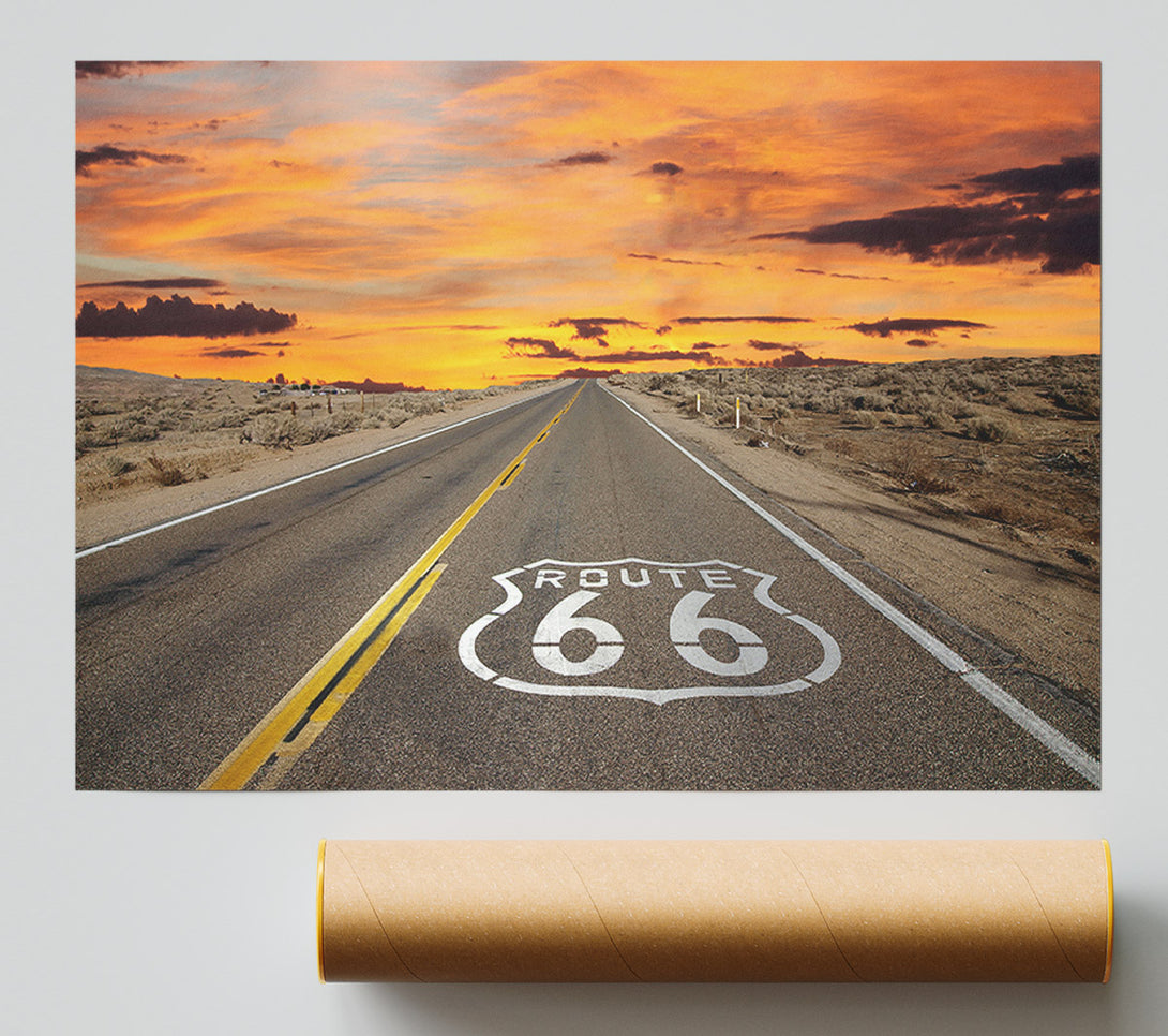 Our Route 66 Sunset Poster is printed 260 GSM premium lustre paper that offers vibrant colours and exceptional detail.