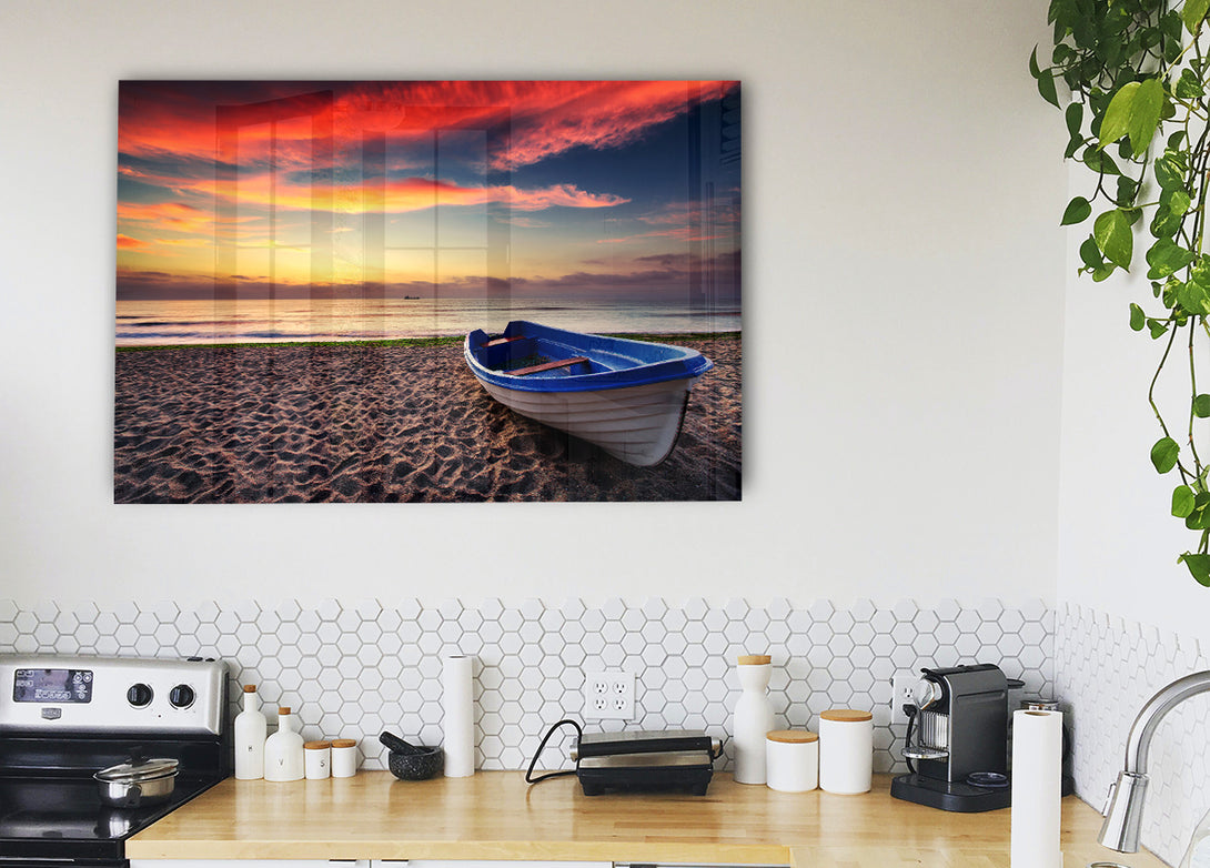 Row Boat Skies acrylic print, UV printed onto 5mm thick acrylic glass. Comes with everything you need to hang on your wall.