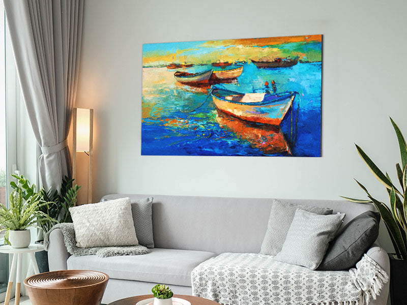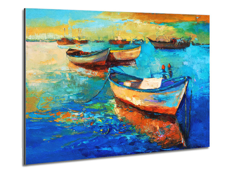 Sail Boats On The Sunset Waters Printed on brushed aluminium dibond. A modern way to display art and easy to maintain.