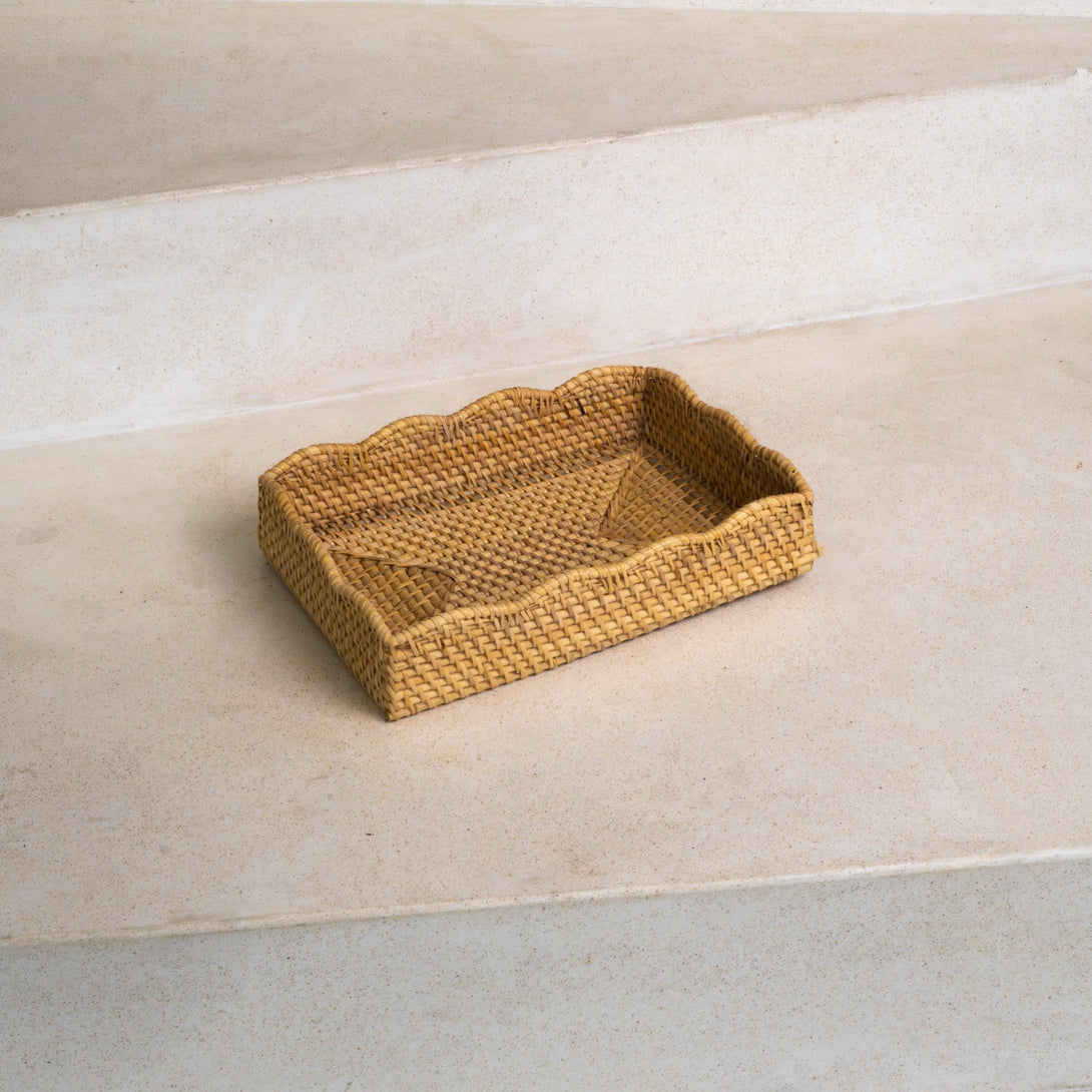 Slowly shaped by hand in small batches, the Saji Tray is woven from natural rattan using traditional techniques that create a strong yet lightweight structure. The curved edge is formed by hand to give it a soft, considered silhouette that works beautifully throughout the home. Whether used for serving, storing or styling, each tray carries natural variation in tone and texture that reflects the craftsmanship and organic materials behind it.