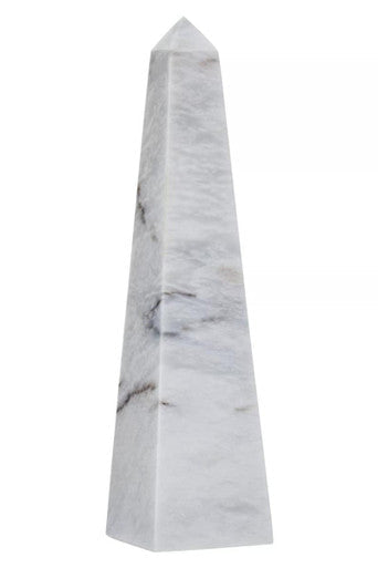 The Salmo large white marble obelisk features subtle grey veining, creating a contemporary aesthetic.
