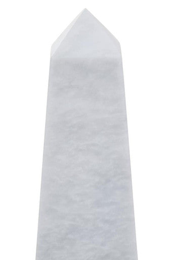 The Salmo small white marble obelisk features subtle grey veining, creating a contemporary aesthetic.