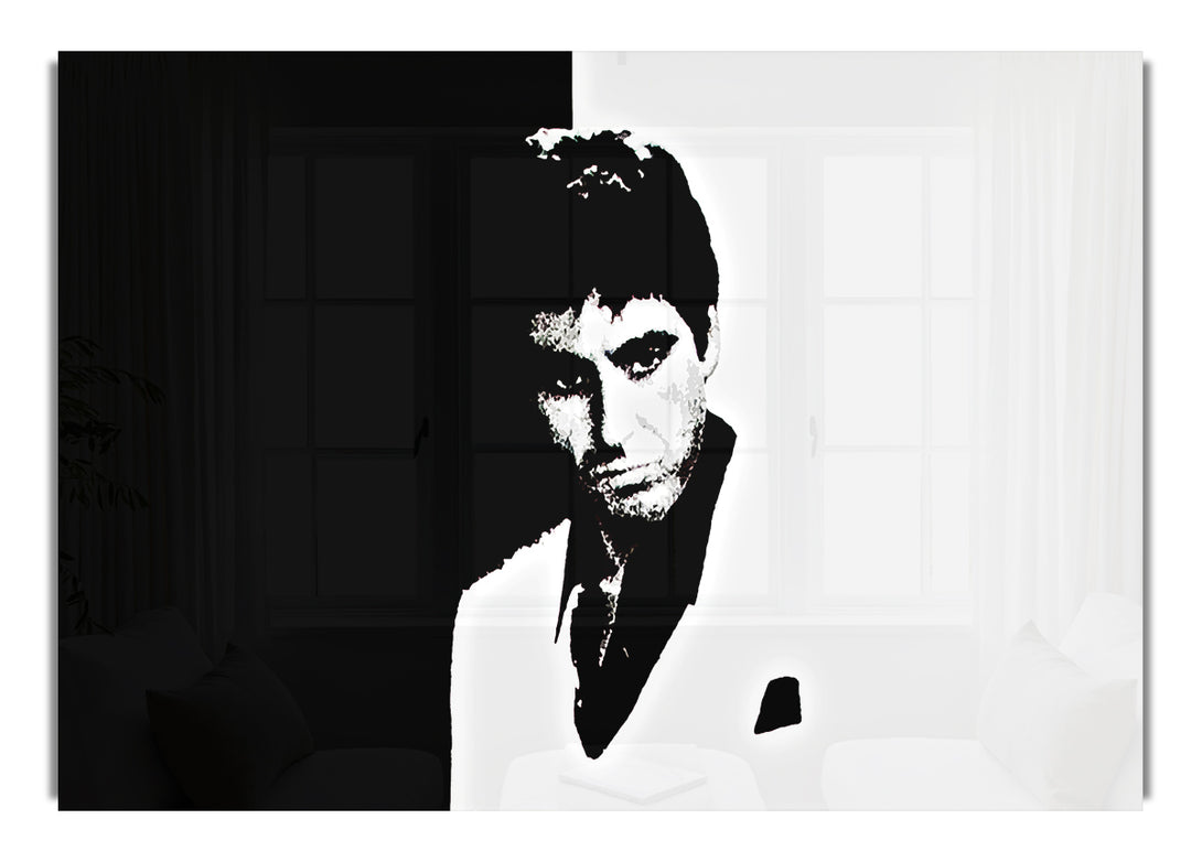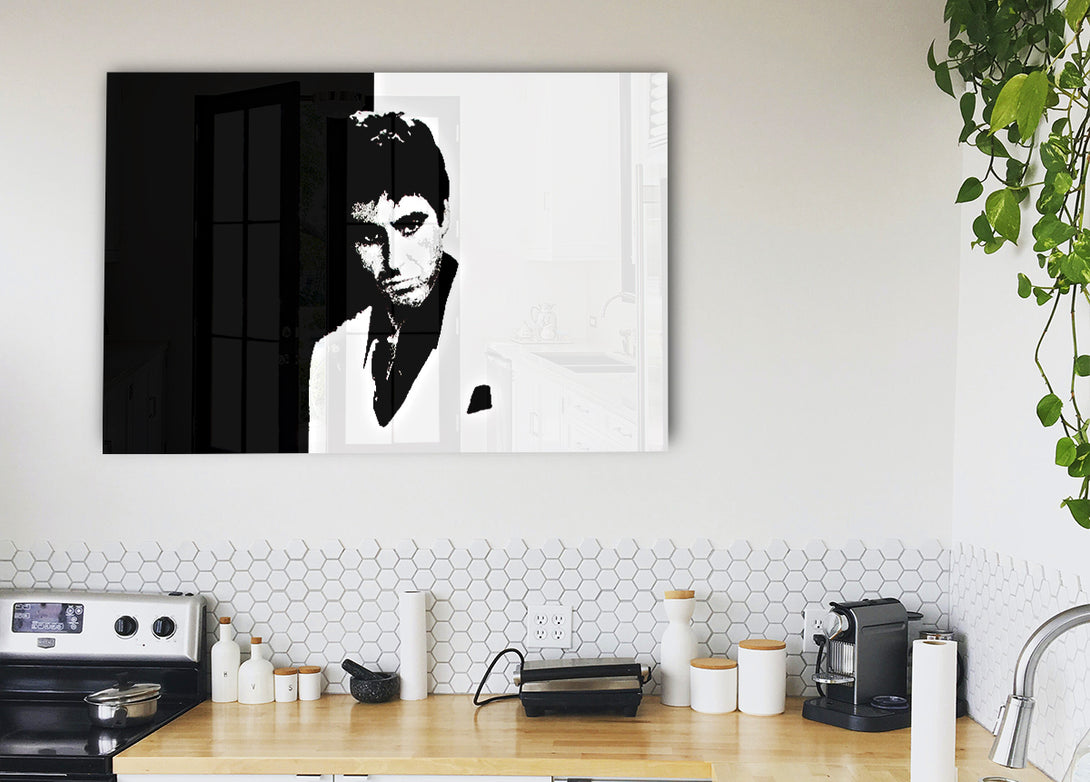Scarface B~w acrylic print, UV printed onto 5mm thick acrylic glass. Comes with everything you need to hang on your wall.