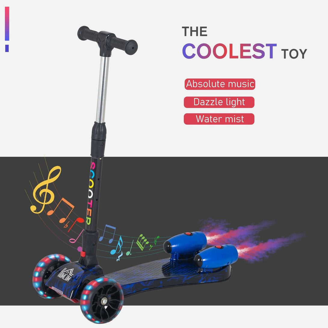 Scooter for Kids Toddler 3 Wheel Adjustable Height w/ Flashing Wheels Music Water Spray Foldable Kick Scooter for Boys and Girls 3 - 6 Yrs Blue