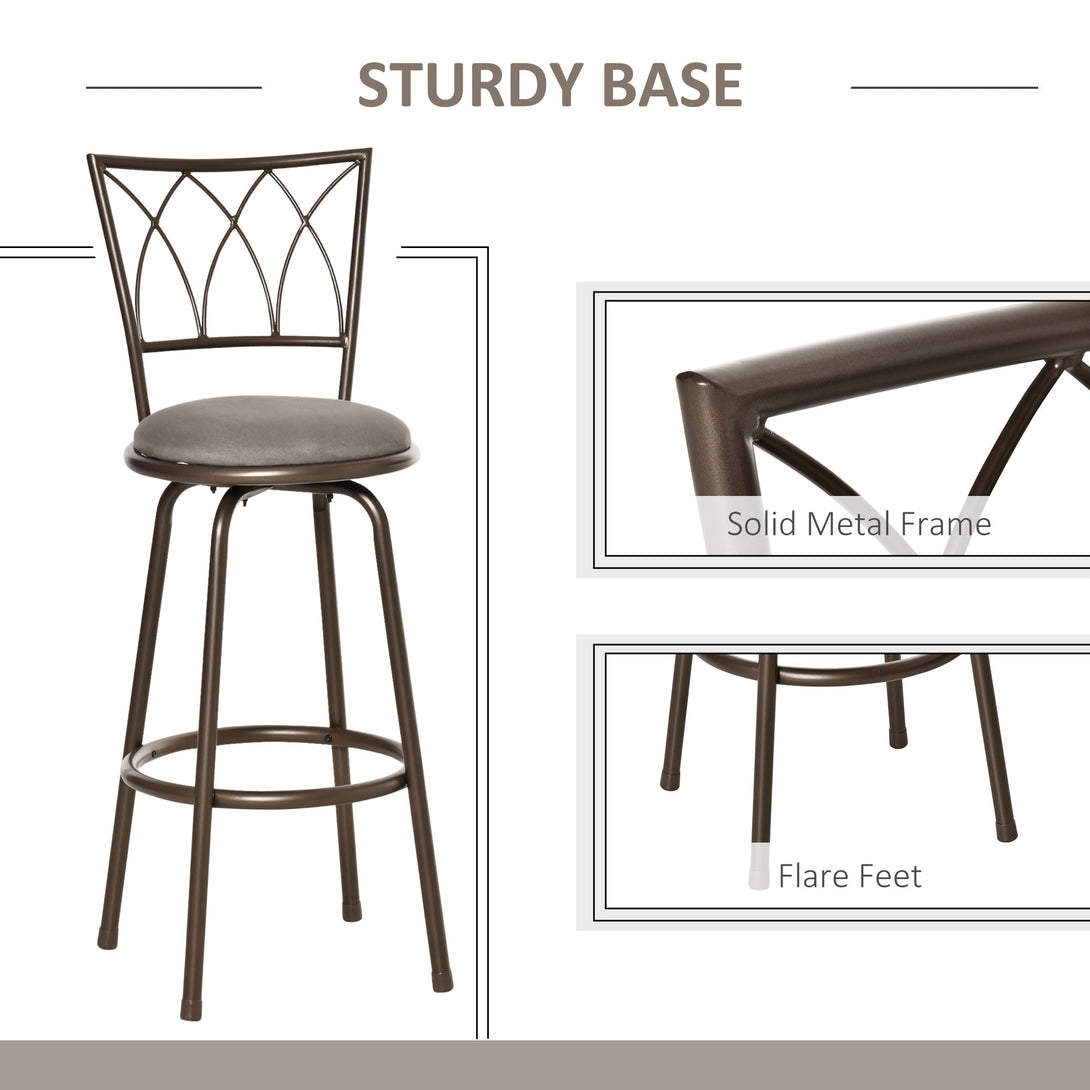 A beautiful bronze-tone finish, a sharp angled back and perfectly-padded seat makes these two kitchen stool, from HOMCOM, the perfect accompaniment for your dining area this season. Using metal for a strong structure, the frames are crafted into a rounded shape on the lower, with a winged back filled with diamond webbing - this is a vintage, yet slightly sophisticated look. Bottom bar to rest your feet, with a soft seat so you can sit comfortably. Stool swivels a full 360° - you can move freely.