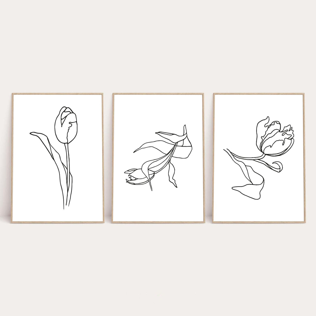 Set Of 3 Flowers Simple Line Work Bedroom Wall Decor Print