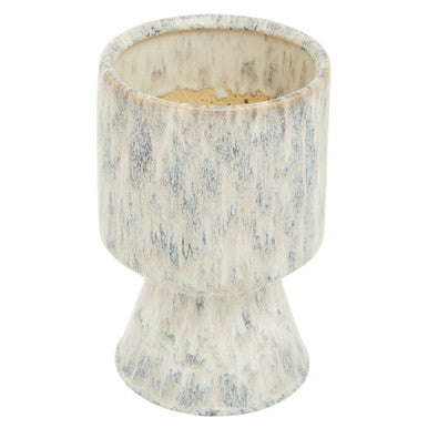 Skilfully milled into a geometric shape, this planter is well-suited to display plants and flowers on special occasions. Made from robust stoneware and given a beige finish with a speckled effect.
