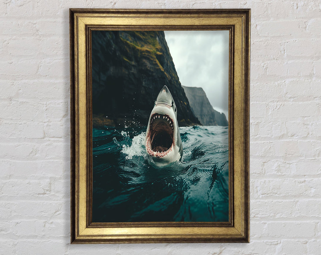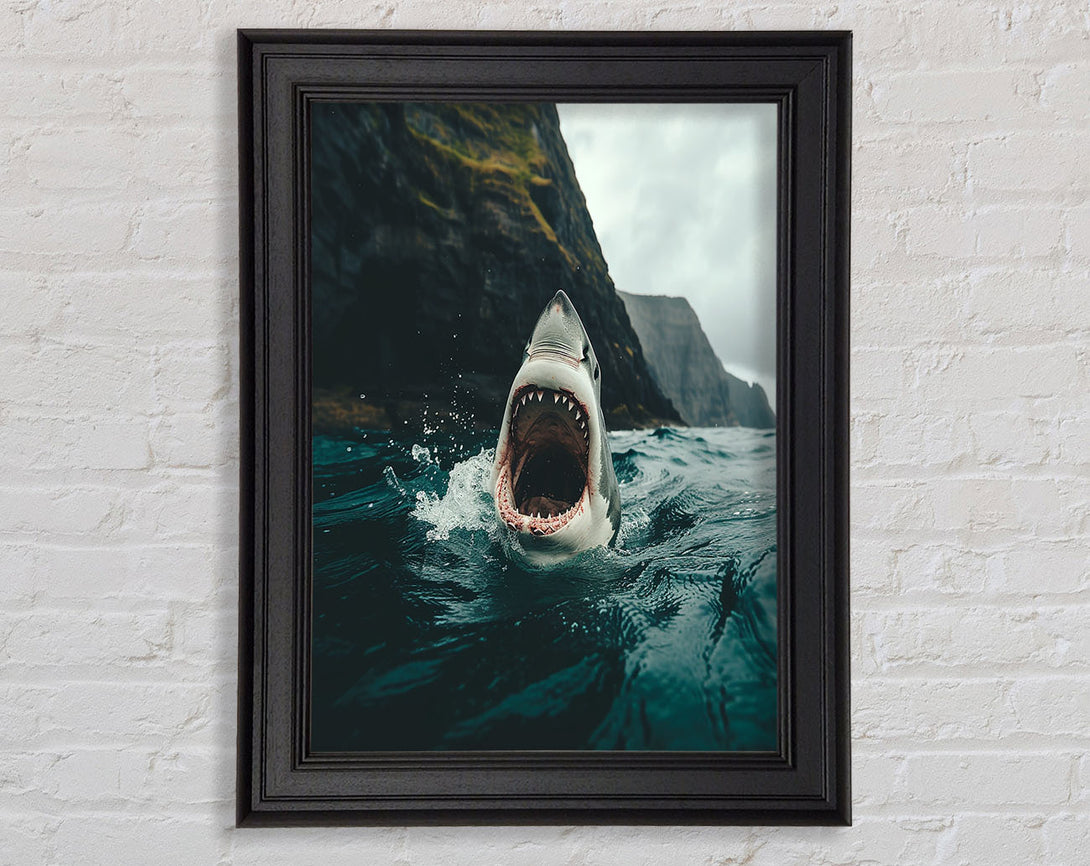 Shark Wih Wide Mouth Framed Print