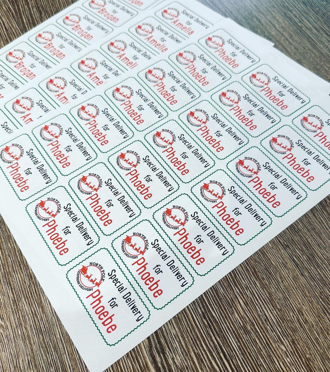 Sheet Of 21 Personalised Name North Pole Express Christmas Present Stickers Gift Labels Christmas stickers