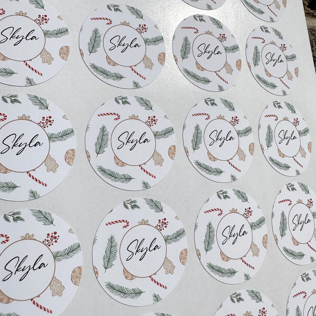 Sheet Of 24 Personalised Name Neutral Candy Cane Christmas Present Stickers Gift Labels Christmas stickers