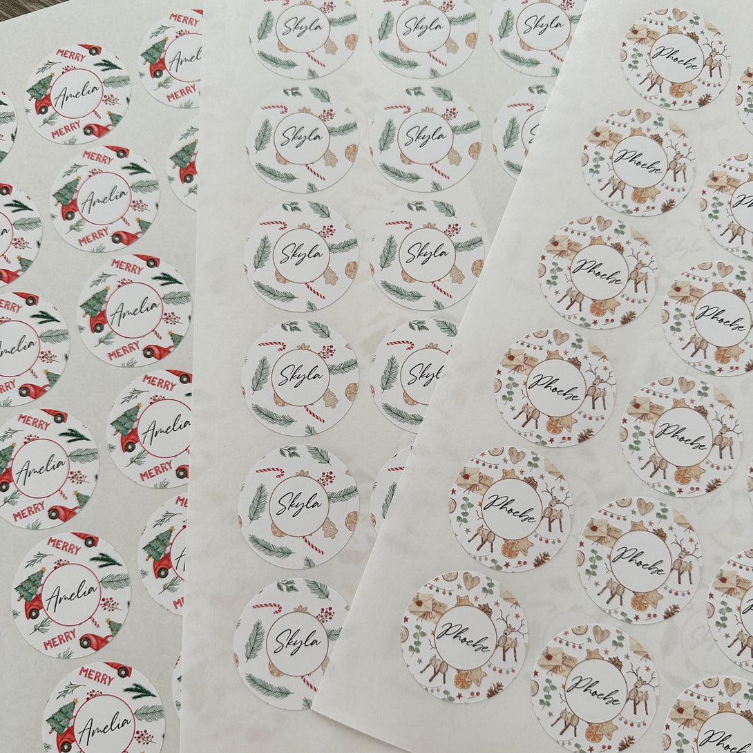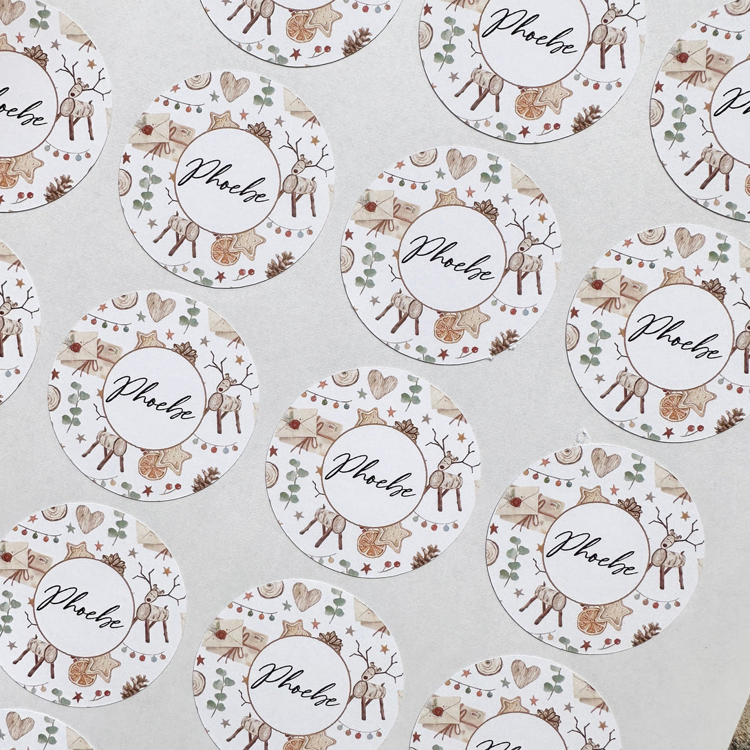Sheet Of 24 Personalised Name Neutral Reindeer Christmas Present Stickers Gift Labels Christmas stickers