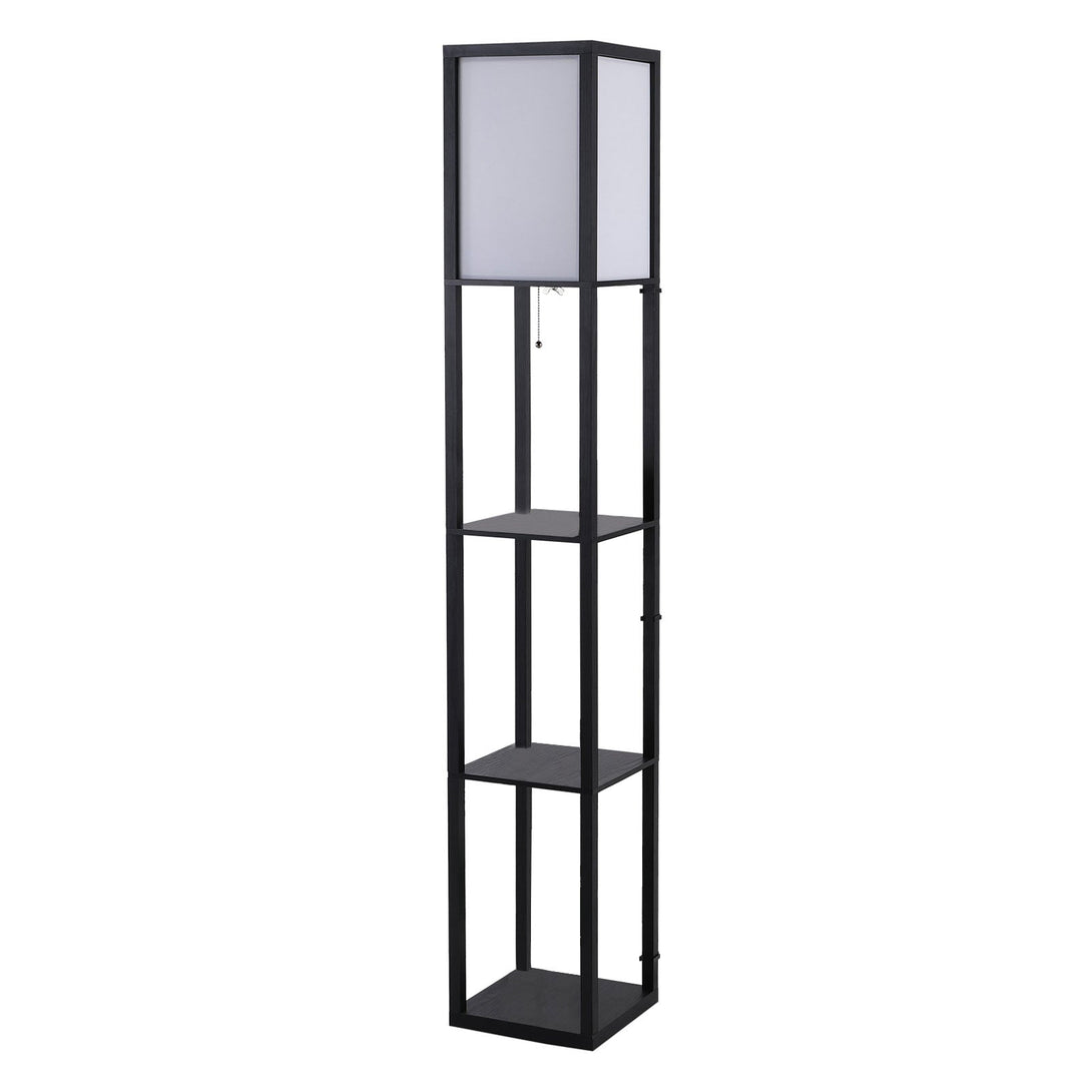 Bring light, beauty and storage into your living room and beyond, thanks to our HOMCOM standing lamp for living room. Formed of three shelves and top light, the standard lamp provides room for storage and display of your decorations and with a white shade to omit a welcoming ambience in your home. Controlled by a metal chain switch, so you can turn it on and off easily. The living room lamp is tough and durable, with a smooth and protective melamine coating to finish.