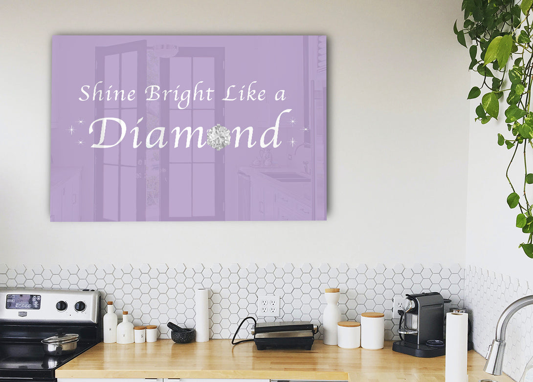Shine Bright Like A Diamond Rihanna Lilac acrylic print, UV printed onto 5mm thick acrylic glass. Comes with everything you need to hang on your wall.