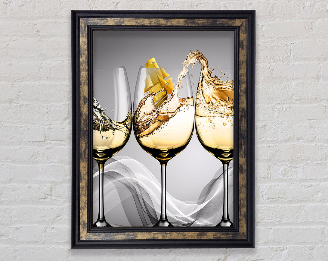 Ship In Wine Glass Framed Print