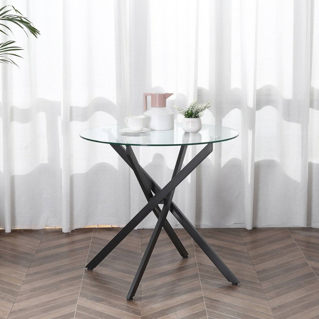 Your living space goes modern with this side table from HOMCOM. Four legs for the frame, in a cool cross-over design is matched in style with the sleek table top, which is made from tempered glass for a solid holding surface. The frame is made from metal, so it's tough for extended use and is able to support up to 30kg. Finished with adjustable feet to protect the floor.