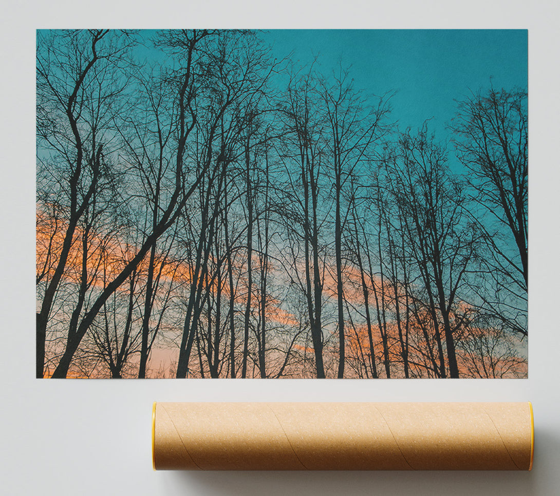 Silhouettes In Teal Sky Poster