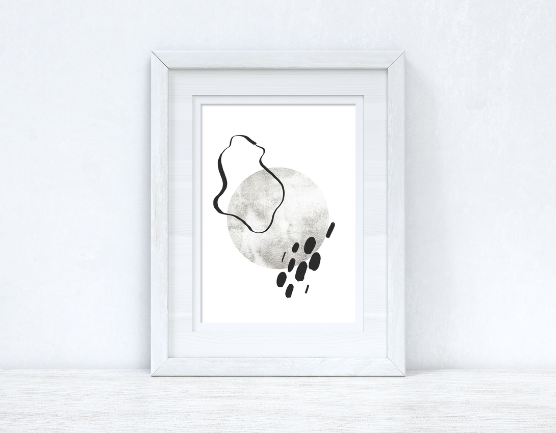 Silver Grey Black Abstract 1 Colour Shapes Home Wall Decor Print
